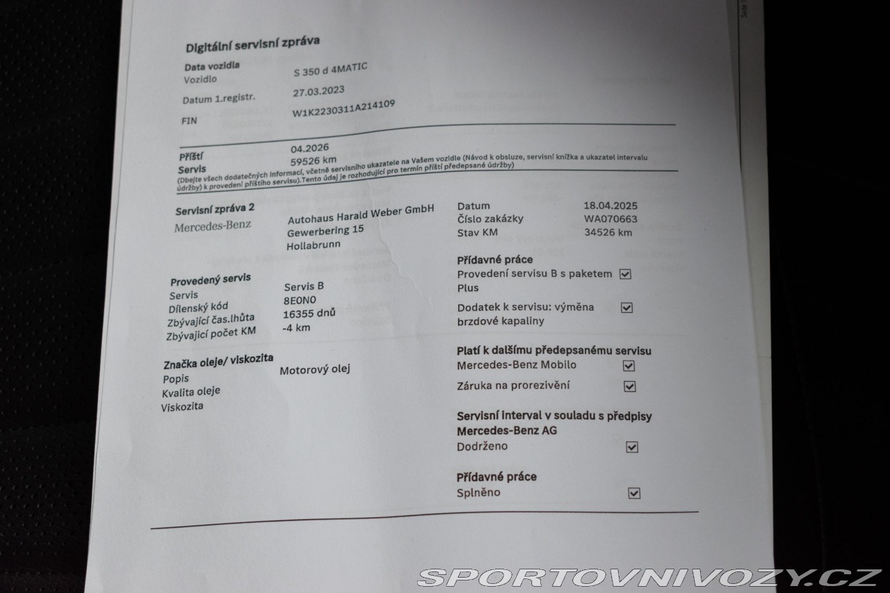 | Doplňující popis: | Historie vozidla prověřena společností CEBIA, na vyžádání lze zaslat Cebia report mailem. Pravidelně servisováno v M-B, příští servisní interval za 116 dnů. Z volitelné výbavy: 3d combination display, Airmatic, Aktivní asistent jízdního pruhu (kamera), Aktivní asistent změny jízdního pruhu, Aktivní parkovací asistent, Ambientní osvětlení Premium, AMG Line, AMG-Styling, Asistent nouzového zastavení s varováním hands-off při změně jízdního pruhu, Automatic high beam control plus (ihc+), Automatická klimatizace THERMOTRONIC, Automatická regulace rychlosti, Bezdrátové nabíjení telefonu vpředu, Head-up display, Integrace smartphonu Android Auto, Integrace smartphonu Apple Carplay, Kamera 360°, KEYLESS GO, Klimatizace sedadla pro řidiče a spolujezdce, Komfortní vyhřívání předních sedadel, MAGIC VISION CONTROL, Ochrana chodců, Ochrana vozidla URBAN GUARD Plus, Osvětlení Ambiente CONNECTED LIGHT, Paket jízdních asistentů Plus, Paket Memory pro přední část vozidla, Panoramatické posuvné skleněné střešní okno, Rozpoznávání dopravních značek, Sada dálkového parkovacího asistenta, Sada pro čistění vzduchu, Sada pro integrování smartphonu, Sedadlo spolujezdce s rozpoznáním hmotnosti, Servozavírání, Soundsystém Premium, Supersportovní volant - kůže s hlubokou ražbou, Vyhřívání zadních sedadel vlevo a vpravo. Tato nabídka má pouze informativní charakter a neslouží jako podklad pro uzavření objednávky. STOP CARS s.r.o. si vyhrazuje právo uzavření všech smluvních vztahů písemně. | |