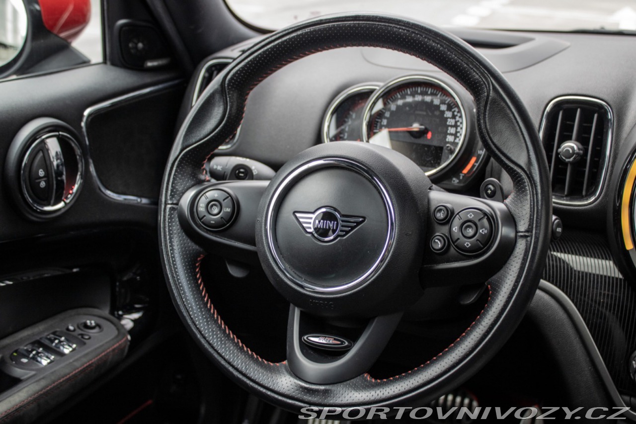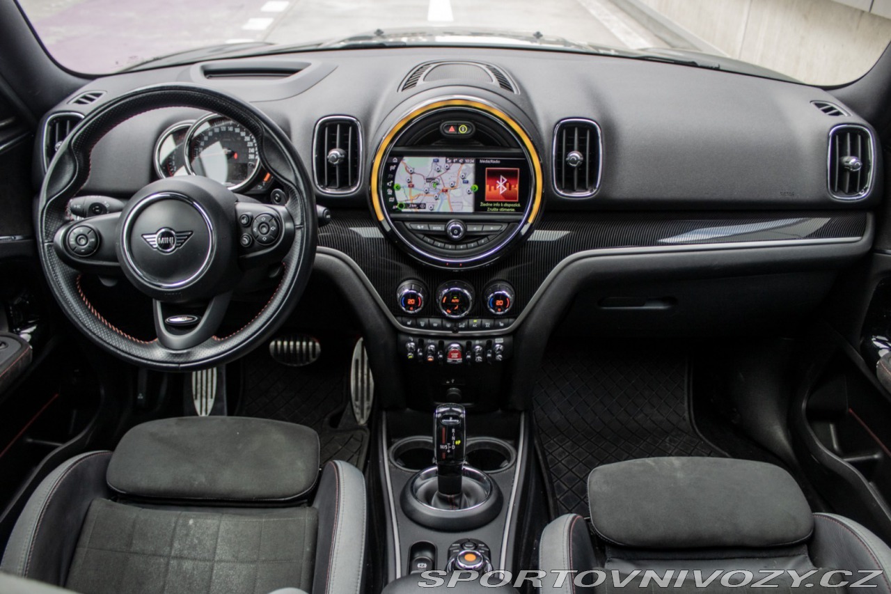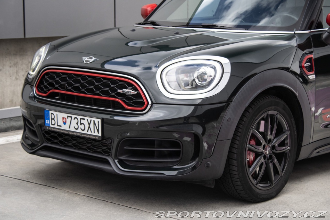 | Nadstandardní výbava: | prémiové audio Harman Kardon, Asistent brzdenia pri zatáčaní, Chrómované olemovanie predných a zadných svetlometov, Držiak nápoja, Dvojitá okrúhla koncovka výfuku, Dynamická kontrola stability (Dynamic Stability Control - DSC), Elektrická parkovacia brzda, John Cooper Works kožený volant, John Cooper Works športové sedadlá, Osvetlenie batožinového priestoru, USB rozhranie, Výškovo a pozdĺžne nastaviteľný volant, Výškovo nastaviteľné sedadlo vodiča, Zadné LED svetlá, Zadný spojler, Zadný stierač, Športová automatická prevodovka, Športové nastavenie podvozku Výbava: ABS, Airbagy - počet, Alarm, Brzdový asistent, Centrálne zamykanie, Imobilizér, Isofix, Parkovacia kamera, Systém kontroly tlaku v pneumatikách (TPMS), Asistent rozpoznávania dopravných značiek (ISLW/ISLA), Varovanie o vzdialenosti (BAS Plus), Systém tiesňového volania (e-Call), Asistent diaľkových svetiel (HBA), Autorádio, Bezkľúčové otváranie dverí, Bezkľúčové štartovanie, Bluetooth handsfree, Diaľkové ovládanie zamykania, Dotykový displej, Elektrické okná, Elektrické zrkadlá, Elektrické ovládanie kufra, Fólie, Klimatizácia, Kožený interiér, Kožený paket, Lakťová opierka, LED svetlomety, LED svietenie, Multifunkčný volant, Navigačný systém, Palubný počítač, Parkovacie senzory, Posilňovač riadenia, Tempomat, Vyhrievané predné sklo, Vyhrievané sedačky, Vonkajší teplomer, Apple CarPlay, Android Auto, Welcome light, Virtuálny kokpit, Radenie pod volantom, Asistent rozjazdu do kopca, Dažďový senzor, Head-up display, Hliníkové disky, Panoramatická strecha, Sezónne prezutie, Stop&start systém, Svetelný senzor | |
