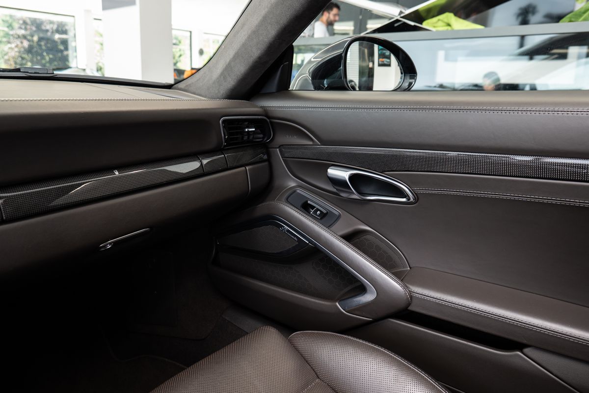 | Doplňující popis: | Interní kód: ZL.291.0261 , Osvětlené prahové lišty (karbon), Rozpoznávání dopravních značek, Podlahové rohože, Home Link, Paket Light Design, Přední opěrky hlavy s emblémem Porsche, Kožené obložení sloupku řízení, Disky kol 20 / kola 911 Turbo, Příjem digitálního rádia (DAB+), Náboje kol - kryty emblémů Porsche v barvě, Rámeček sdružených přístrojů v kůži, Kuřácký paket, Rukojeť řadicí páky v karbonu, Posuvná střecha elektrická (prosklená), Odvětrávání + vyhŕívání sedadel vpředu, Audio systém Burmester High-End Surround, Zadní zatmavená skla, Adaptivní sportovní sedadla vč. 18směrného nastavení sedadel a paměťového paketu, Vnější zpětná zrcátka Sport Design, Porsche Dynamic Chassis Control (PDCC), Interiérový paket: Karbon, Porsche Ceramic Composite Brake PCCB, Porsche Torque Vectoring Plus (PTV Plus), | |