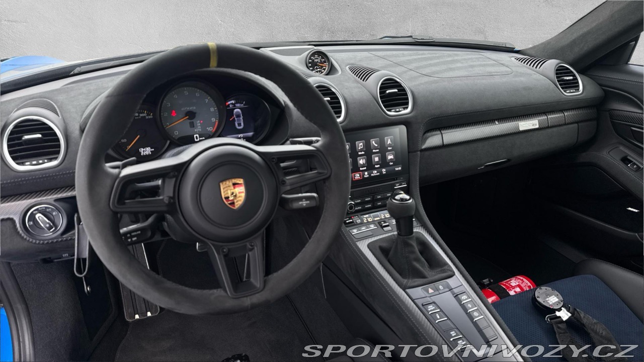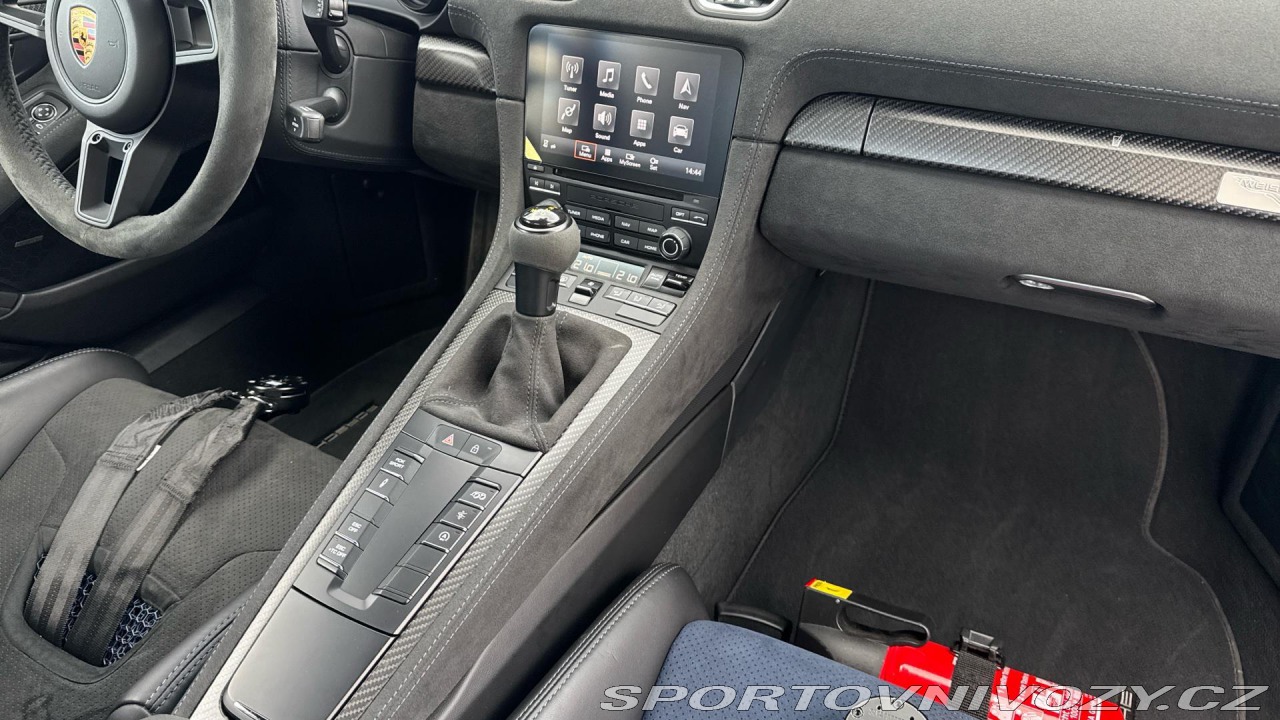 | Doplňující popis: | Záruka Porsche Approved na 12 měsíců s možností prodloužení. Nadstandartní výbava: Vůz je vybaven paketem Clubsport Package a Weissach package, 90litrovou nádrží, sadou na opravu pneumatik s kompresorem, koly lakovanými v odstínu Satin Neodyme, tempomatem, systémem zvedání přední nápravy, hasicím přístrojem, stříbrným logem Porsche, bezpečnostními pásy v barvě Deep Sea Blue, kuřáckým paketem, LED světlomety s Porsche Dynamic Light System Plus, systémem HomeLink, světelným design paketem, ukazatelem rychlostních limitů, zadním parkovacím asistentem s kamerou, odstraněním označení modelu, koberečky, audiosystémem BOSE Surround Sound System, přihrádkou na smartphone, koženým/Race-Tex paketem dveří, 3D tištěnými skořepinovými sedadly se střední tvrdostí, paketem akcentů log, koženým panelem klimatizace, karbonovými trojúhelníky oken, lakovaným klíčem s koženým pouzdrem, automaticky stmívatelnými zrcátky s dešťovým senzorem, paketem Sport Chrono Package, víkem úložného prostoru v Alcantaře s logem Porsche, slunečními clonami v Alcantaře, koženým obložením sloupku řízení a podsvícenými karbonovými prahovými lištami. | |