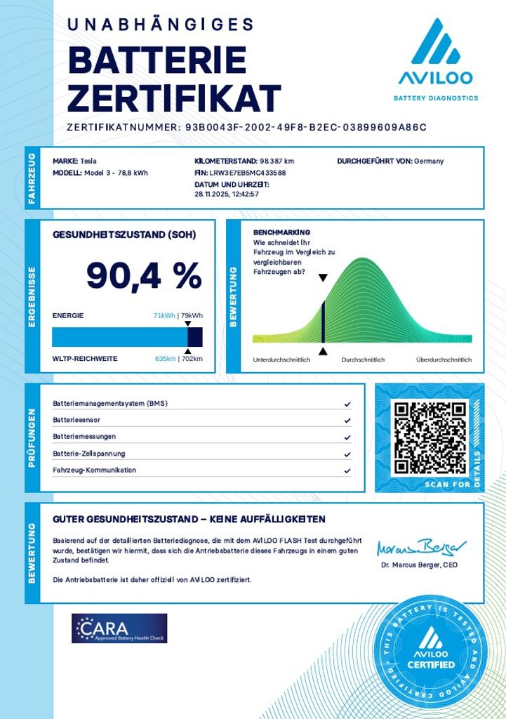 | Doplňující popis: | Tesla Model 3 Long Range Dual Motor 366kW SOH 90, 4% (ODPOČET DPH) - cena uvedena vč. DPH, baterie 78, 8 kWh, dovoz: Německo, VIN: LRW3E7EB5MC433588, elektro, do provozu: 13.12.2021, najeto: 98405 km, pohon kol: 4x4, automatická převodovka, STK do: 3/2028, WLTP 614 km, procesor INTEL ATOM, klimatizace, parkovací kamera, přední a zadní vyhřívaná sedadla, MATRIX SVĚTLOMETY, BOOM BOX. Záruka na Akumulátor a hnací ústrojí 8 let nebo po ujetí 192.000 km (podle toho, co nastane dříve).*MOŽNOST VYKOUPENÍ VAŠEHO STARÉHO VOZU PROTIÚČTEM* *MOŽNOST VÝHODNÉHO FINANCOVÁNÍ už bez nulové akontace* Pro nezávaznou kalkulaci nás neváhejte kontaktovat. Nutno vždy volat předem! Prohlídky možné i mimo pracovní dobu tel. 732710796 Mates auto. Nejedná se o návrh na uzavření smlouvy (nabídku) dle § 1731 zákona č. 89/2012 Sb., občanský zákoník, ale o nezávaznou nabídku., | |