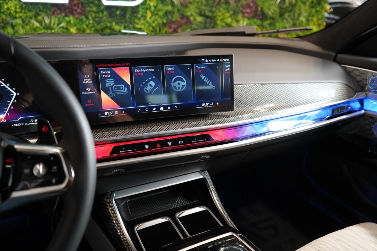 | Doplňující popis: | AS261815 Záruka: Tovární záruka na 3 roky / 999 000 km Servis: Service Inclusive, 5 let / 100 000 km Výbava: Barva: Black Sapphire, metalický lak Čalounění: BMW Individual kůže Merino s rozšířením Smoke White 21 M aerodynamická kola 909 M Bicolour Jet Black 3D leštěná M sportovní brzdy s modrými třmeny Obložení interiéru M Carbon Fibre se stříbrným prošitím/Piano Finish Black Paket Connoisseur Aktivní ventilace předních sedadel Masážní funkce pro přední sedadla Paket Innovation Parking Assistant Professional Driving Assistant Professional BMW IconicSounds Electric Sportovní automatická převodovka Automatické ovládání dveří Travel & Comfort System M sportovní kožený volant Skleněné prvky interiéru CraftedClarity M sportovní interiér BMW Individual Gran Lusso interiér M sportovní exteriér M zadní spoiler BMW ledvinky Iconic Glow M Shadowline černé vysoce lesklé okenní lišty M Shadowline černé vysoce lesklé okenní lišty s rozšířeným obsahem BMW Legal Emergency Call Ukazatel tlaku v pneumatikách Sluneční clony zadních bočních oken a el. ovládaná sluneční clona zadního okna Protisluneční ochrana oken Parking Assistant Professional Driving Assistant Professional Masážní funkce pro zadní sedadla Masážní funkce pro přední sedadla Multifunkční sedadla řidiče a spolujezdce Multifunkční zadní sedadla Paket Heat Comfort, vpředu a vzadu Aktivní ventilace předních sedadel Executive Lounge zadní konzola Aktivní ventilace zadních sedadel Paket Connected Professional Přihrádka pro bezdrátové nabíjení BMW Live Cockpit Professional Bowers & Wilkins Diamond Surround Sound System DAB tuner Executive Drive Pro, aktivní stabilizátory Integrované aktivní řízení včetně natáčení kol zadní nápravy BMW Křišťálové světlomety Iconic Glow Apple CarPlay Android Auto Head,Up displej Panoramatické střešní okno ISOFIX Elektrické víko zavazadlového prostoru Elektricky nastavitelná sedadla s paměťovou funkcí Vzduchové odpružení s regulací výšky a tuhosti Spotify Satelitní navigace Vyhřívaný volant Nezávislá klimatizace Volič jízdních režimů 360° kamery Přední a zadní parkovací senzory | |