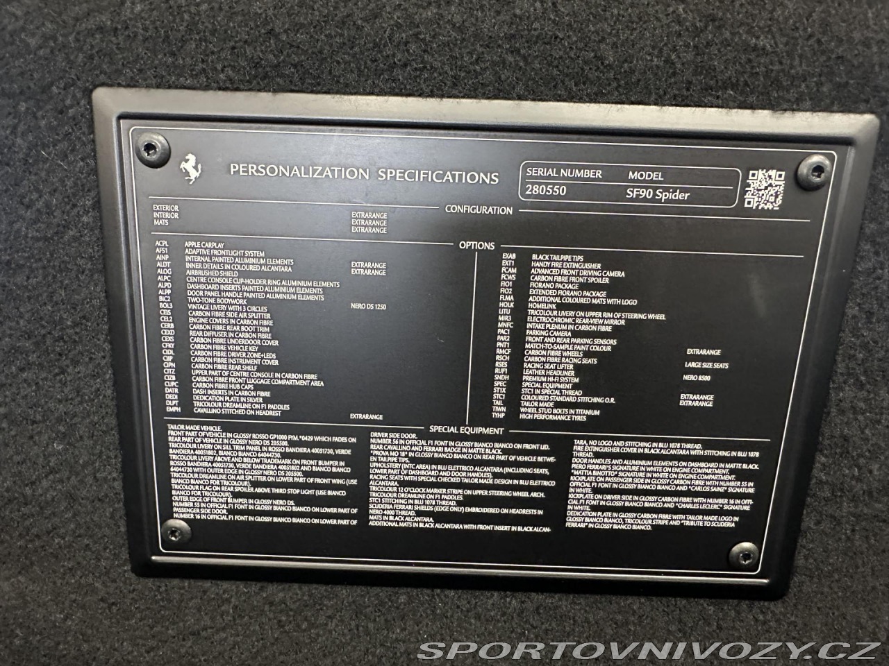 | Doplňující popis: | Vozidlo v historických barvách s podpisy závodních jezdců vytvořené v ateliéru Ferrari Tailor Made one of one. V případě zájmu nebo sjednání si prohlídky nás neváhejte kontaktovat na telefonním čísle 604 867 221 nebo nás přijďte navštívit na našem showroomu na Praze 5 v Radotíně. | |