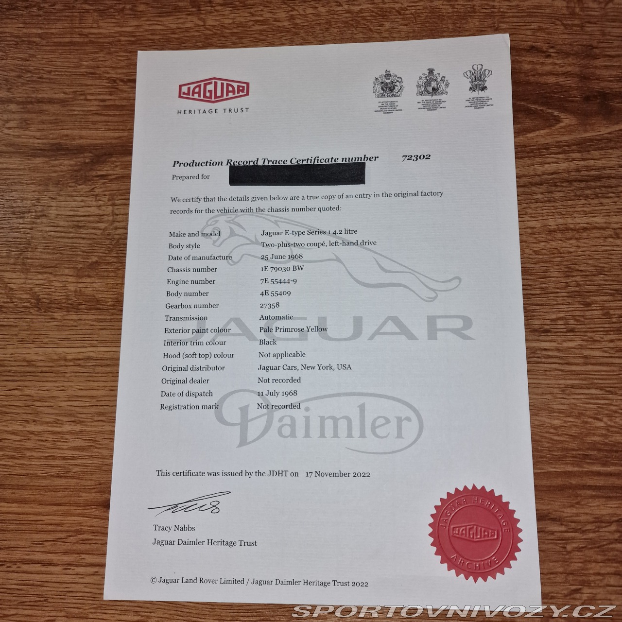 | Doplňující popis: | Jaguar E-Type Série 1.5 2+2 Coupe (1968) – 4.2 Automat Popis: Prodám ikonický Jaguar E-Type v praktičtější verzi 2+2 Coupe.Jedná se o vzácný přechodový model Série 1.5 vyrobený v červnu 1968. Vůz byl původně exportován do New Yorku (USA), nyní se nachází v ČR a je v registru XKE Data (vin kód 1E79030BW). Pod kapotou pracuje legendární řadový šestiválec 4.2l se dvěma karburátory Zenith-Stromberg (původní specifikace pro USA). Převodovka: Automatická Borg Warner(BW) Datum výroby 25.6.1968.Výkon 265 Hp.Zrychlení 0-100 7,1 s.Najeto 81794 Mil. Vozidlo prošlo náročnou renovací(vše doložím fotodokumentací),k vozidlu je certifikát autentičnosti Heritage Trust.Z celkového počtu Jaguaru E-type 72511 kusů,bylo pouze v této konfiguraci 1.5 série vyrobeno 180 kusů a dochovalých dle registru je 35 kusů.Vůz je skvělým kouskem pro sběratele nebo jako investice. Prodávám z důvodu redukce vozového parku. Inzerát je platný do smazání. Hlinsko v Čechách Tel:736742448 | |