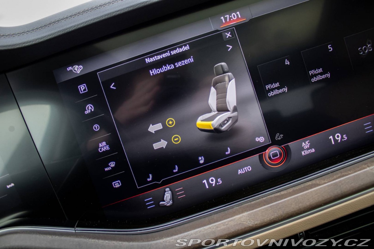 | Nadstandardní výbava: | Vozidlo je vybavené artemickým čelným sklom, Možnosť voľby jazdných režimov a nastavenia výšky podvozku, 'Front Assist' a 'City Break' systém na sledovanie diania pred vozidlom a systém núdzového brzdenia, 'Pedestrian Recognition' - asistent rozpoznávania kolízie s chodcom s funkciou núdzového brzdenia, Ambientné biele LED osvetlenie interiéru, Bezkľúčový prístup a štartovací systém 'Keyless Access', Systém rozpoznania únavy vodiča Výbava: ABS, Adaptívny tempomat, Airbagy, ASR, Brzdový asistent, Centrálne zamykanie, EBD, EBV, ESP, Imobilizér, Isofix, Parkovacia kamera, Systém kontroly tlaku v pneumatikách (TPMS), Systém tiesňového volania (e-Call), Autorádio, Adaptívny podvozok, Bezkľúčové otváranie dverí, Bezkľúčové štartovanie, Bluetooth handsfree, Diaľkové ovládanie zamykania, Dotykový displej, Elektrické okná, Elektrické sedadlá, Elektrické zrkadlá, Elektrické ovládanie kufra, Klimatizácia, Kožený interiér, Lakťová opierka, LED svetlomety, Multifunkčný volant, Navigačný systém, Odvetrávané sedadlá, Palubný počítač, Pamäťové sedačky, Parkovacie senzory, Sedadlá s masážnou funkciou, Tempomat, Vyhrievané predné sklo, Vyhrievané sedačky, Vyhrievané zrkadlá, Vyhrievaný volant, Vzduchové odpruženie podvozku, Vonkajší teplomer, Apple CarPlay, Virtuálny kokpit, Radenie pod volantom, Matrix svetlá, Atermické čelné sklo, Ambientné osvetlenie, Asistent jazdných pruhov, Asistent rozjazdu do kopca, Dažďový senzor, Head-up display, Hliníkové disky, Hmlovky, Kontrola mŕtveho uhla, Panoramatická strecha, Stop&start systém, Strešný nosič, Ťažné zariadenie | |