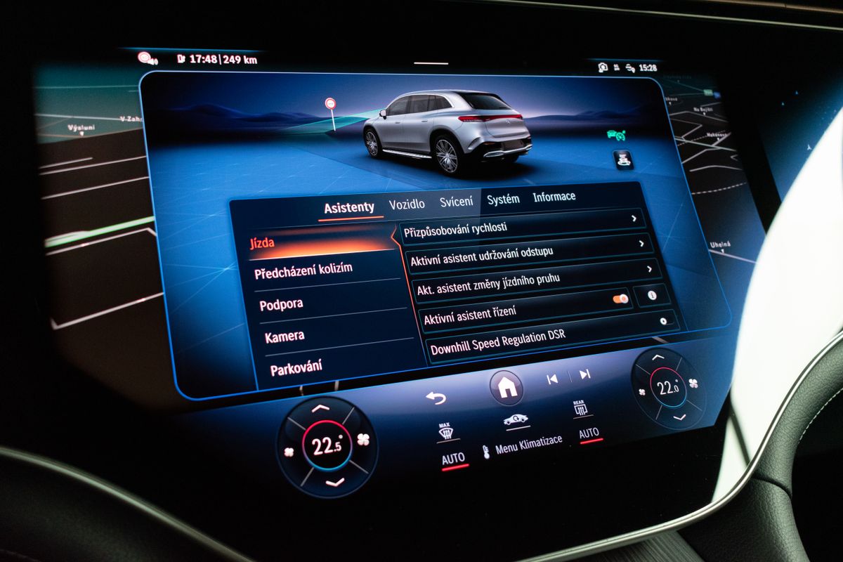 | Nadstandardní výbava: | bluetooth, senzor tlaku v pneumatikách, hlídání mrtvého úhlu, automatické parkování, elektronická ruční brzda, bezklíčové odemykání, bezklíčové startování, palubní počítač, digitální příjem rádia (DAB), USB, satelitní navigace, digitální přístrojový štít, dotykové ovládání palubního počítače, autorádio, bezdrátová nabíječka mobilních telefonů, Apple CarPlay, Android Auto, multifunkční volant, ambientní osvětlení interiéru, paměť nastavení sedadla řidiče, vyhřívaná sedadla, odvětrávaná sedadla, isofix, el. seřiditelná sedadla, zadní stěrač, zadní světla LED, automatické přepínání dálkových světel, mlhovky, alu kola, boční nášlapy, el. zrcátka, vyhřívaná zrcátka, el. sklopná zrcátka, senzor stěračů, senzor světel, el. přední okna, el. okna, tónovaná skla, el. víko zavazadlového prostoru, řazení pádly pod volantem, regulace výšky podvozku, pérování vzduch, regulace tuhosti podvozku, panoramatická střecha, střešní šíbr el., čtyřzónová klimatizace, přední světla LED, LED adaptivní světlomety, deaktivace airbagu spolujezdce, centrál dálkový, dělená zadní sedadla, head-up display, hlasové ovládání palubního počítače, adaptivní tempomat, hands free, 360° monitorovací systém (AVM), parkovací senzory přední, tažné zařízení, dřevěné obložení, stabilizace podvozku (ESP), protiprokluzový systém kol (ASR), nouzové brzdění (PEBS), brzdový asistent, regulace rychlosti při jízdě ze svahu, 9x airbag, pohon 4x4, aut. převodovka, kožené čalounění, ABS, | |