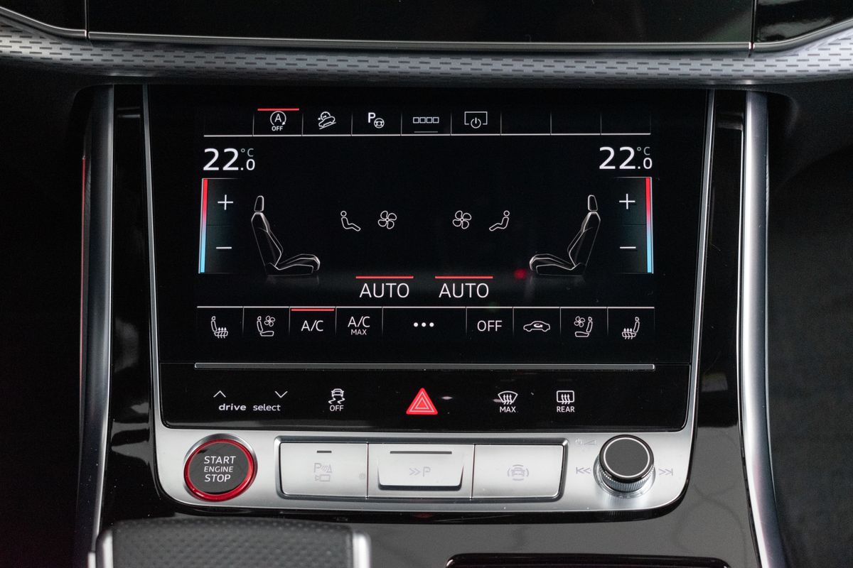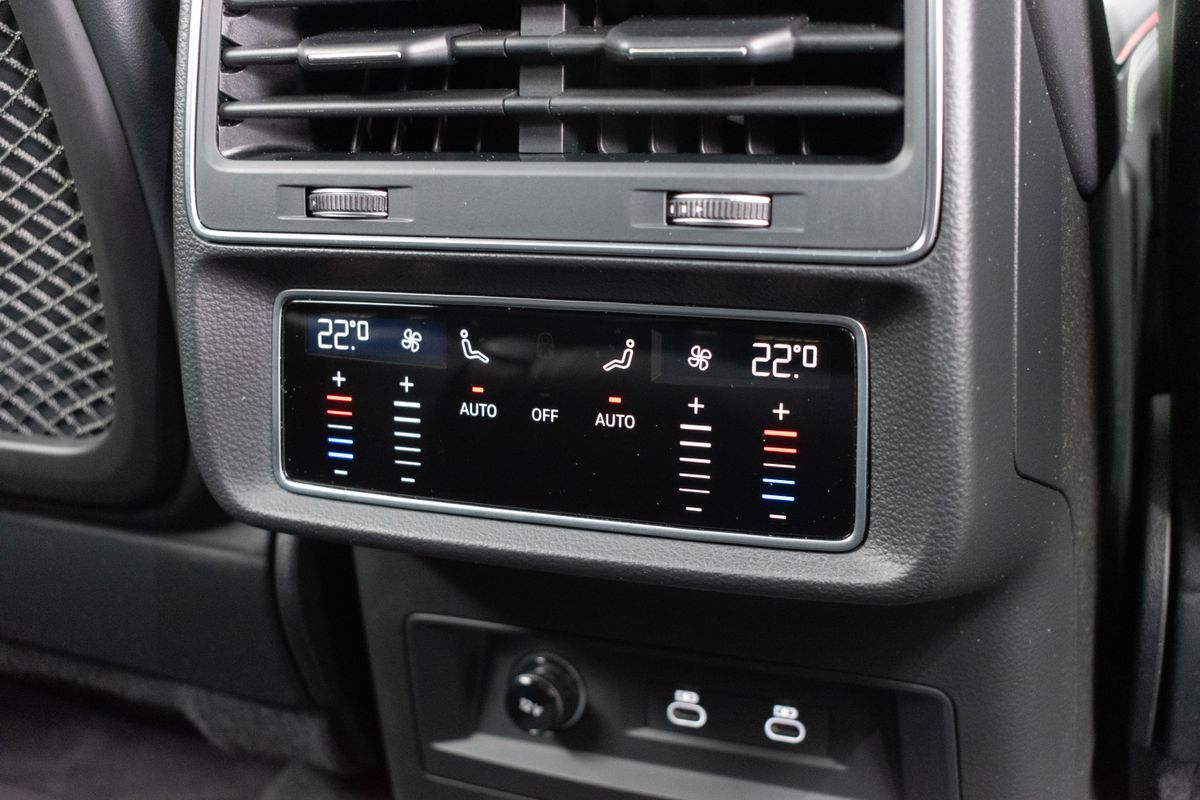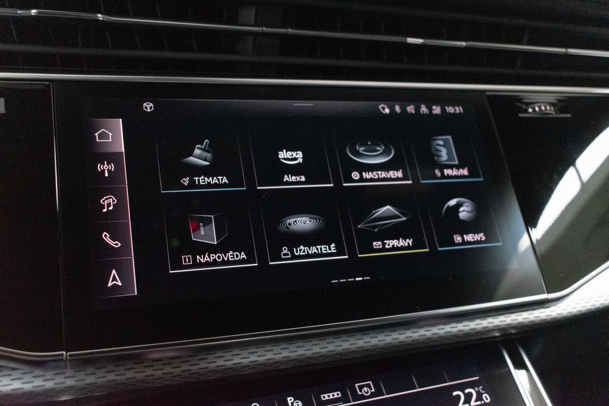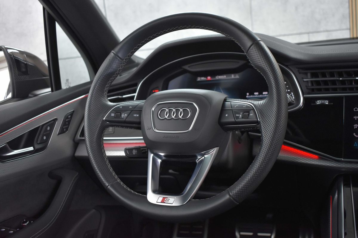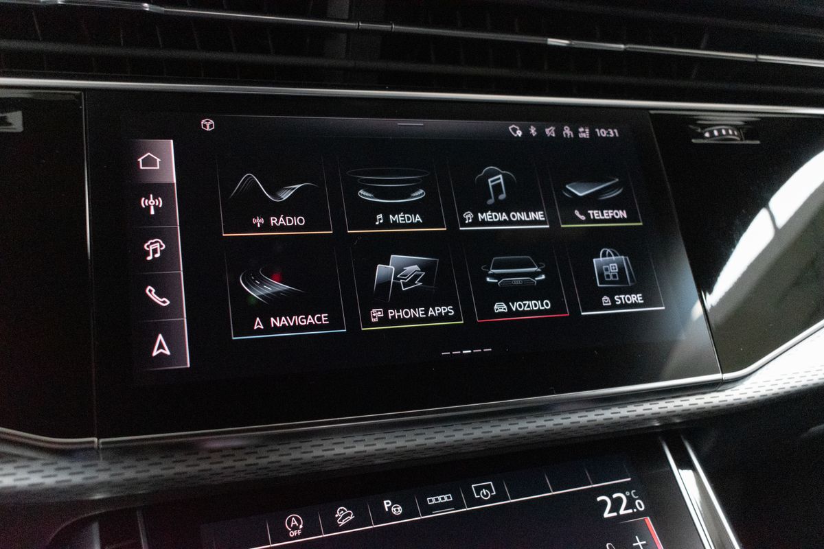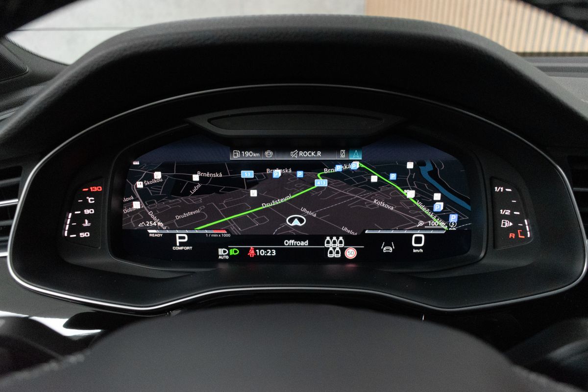 | Nadstandardní výbava: | bluetooth, senzor tlaku v pneumatikách, sledování únavy řidiče, hlídání mrtvého úhlu, automatické parkování, elektronická ruční brzda, imobilizér, bezklíčové odemykání, bezklíčové startování, start-stop systém, palubní počítač, digitální příjem rádia (DAB), USB, digitální přístrojový štít, dotykové ovládání palubního počítače, autorádio, bezdrátová nabíječka mobilních telefonů, Apple CarPlay, Android Auto, multifunkční volant, vyhřívaný volant, nastavitelný volant, ambientní osvětlení interiéru, zadní loketní opěrka, síťka mezistěny zavazadlového prostoru, výškově nastavitelné sedadlo řidiče, výškově nastavitelná sedadla, paměť nastavení sedadla řidiče, vyhřívaná sedadla, odvětrávaná sedadla, sportovní sedadla, isofix, el. seřiditelná sedadla, zadní stěrač, denní svícení, zadní světla LED, automatické přepínání dálkových světel, mlhovky, alu kola, el. zrcátka, vyhřívaná zrcátka, el. sklopná zrcátka, senzor stěračů, senzor světel, el. přední okna, el. okna, tónovaná skla, el. víko zavazadlového prostoru, řazení pádly pod volantem, regulace výšky podvozku, pérování vzduch, regulace tuhosti podvozku, panoramatická střecha, střešní šíbr el., čtyřzónová klimatizace, deaktivace airbagu spolujezdce, centrál dálkový, dělená zadní sedadla, adaptivní tempomat, hands free, 360° monitorovací systém (AVM), parkovací senzory přední, venkovní teploměr, sportovní podvozek, posilovač řízení, stabilizace podvozku (ESP), protiprokluzový systém kol (ASR), nouzové brzdění (PEBS), regulace rychlosti při jízdě ze svahu, 10x airbag, pohon 4x4, aut. převodovka, 8 rychlostních stupňů, kožené čalounění, asistent jízdy v jízdním pruhu, hlídání jízdního pruhu, ABS, | |