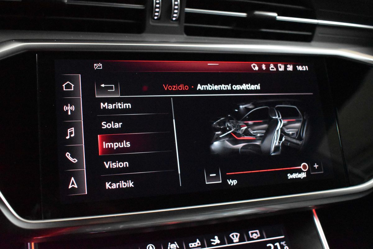 | Doplňující popis: | Vozidlo registrované jako nové v ČR. Pravidelně servisováno, příští servisní interval za 12 900 km. Historie vozidla prověřena společností CEBIA, na vyžádání lze zaslat Cebia report mailem. Z volitelné výbavy: Audi sound system, Audi smartphone interface, Audi phone box, Komfortní 4zónová klimatizace, Asistent rozpoznání dopravních značek, Světlomety HD Matrix LED s Audi laserovým světlem, Sedadla sportovní vpředu, Elektricky nastavitelná přední sedadla s pamětovou funkcí pro sedadlo řidiče, Sportovní multifunkční kožený volant 3ramenný s pádly řazení, Dekorace z matného kartáčovaného hliníku, Zvětšení objemu palivové nádrže na 73 l, Vnější zpětná zrcátka automaticky zatmavitelná s pamětí, Servomechanické dovírání předních a zadních dveří, LED zadní světla s dynamickými LED směrovými světly, Head-up displej, Audi Virtual Cockpit, Adaptivní pneumatický podvozek, S line sportovní paket, S line exteriérový paket, Paket odkládacích prostor, Asistenční paket Tour, Asistenční paket City, Zpětné zrcátko s automatickou clonou, nastavitelný multifunkční volant, Vyhřívaná el. nastavitelná přední sedadla, Elektricky nastavitelná vyhřívaná zpětná zrcátka, Vyhřívané ostřikovače, Stěrače: s dešťovým sensorem, Elektrický posilovač řízení s progresivním účinkem, Elektrické zavírání víka zavaz. prostoru, Autonomní řízení semi a aktivní kontrola jízdního pruhu, Bluetooth s podporou telefonu, s podporou streamingu. Tato nabídka má pouze informativní charakter a neslouží jako podklad pro uzavření objednávky. STOP CARS s.r.o. si vyhrazuje právo uzavření všech smluvních vztahů písemně. | |