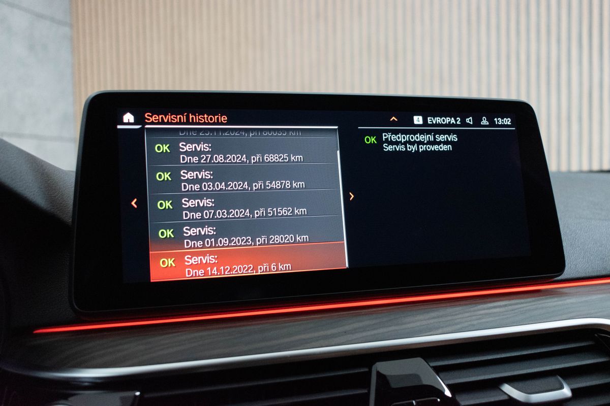 | Doplňující popis: | Vozidlo registrované jako nové v ČR od 1. majitele, s možností odpočtu DPH. Pravidelně servisováno, příští servisní interval za 14 000 km, historie vozidla prověřena společností CEBIA, na vyžádání lze zaslat Cebia report mailem, z volitelné výbavy: M aerodynamický paket, M sportovní paket, Paket pro fixaci nákladu v zavazadlovém prostoru včetně možnosti nastavení úhlu opěradel zadních sedadel, Aktivní ochrana, Driving Assistant Professional, 8stupňová sportovní samočinná převodovka Steptronic včetně řadicích pádel na volantu, Asistent dálkových světlometů, M sportovní brzdy včetně modrých třmenů s označením M, M sportovní podvozek, Parkovací asistent, Dřevěné obložení interiéru Fineline Cove s akcentní lištou Pearl Chrome, Kůže Dakota Cognac s exkluzivním kontrastním prošitím/Black, M sportovní kožený volant, Vyhřívání volantu, Elektricky nastavitelné bederní opěrky předních sedadel, Sportovní přední sedadla včetně el.nastavitelného úhlu opěradla a šířky opěradla, Vyhřívání předních sedadel, M Shadowline černé vysoce lesklé okenní lišty, M Shadowline černé vysoce lesklé podélné střešní nosníky, 4zónová automatická klimatizace, Zvýšená protisluneční ochrana oken (od B-sloupku), HiFi systém – 12 reproduktorů (205 W), Příprava pro mobilní telefon s rozhraním Bluetooth včetně bezdrátového dobíjení. Tato nabídka má pouze informativní charakter a neslouží jako podklad pro uzavření objednávky. STOP CARS s.r.o. si vyhrazuje právo uzavření všech smluvních vztahů písemně. | |