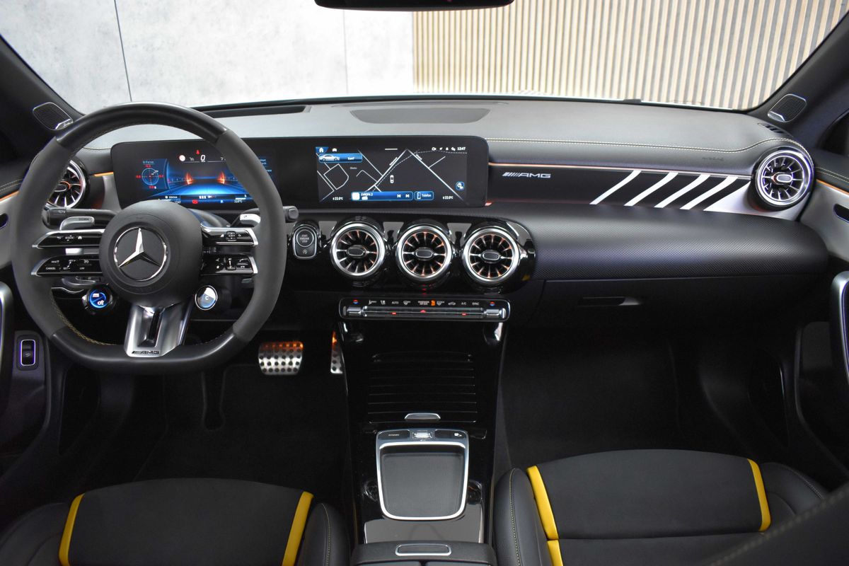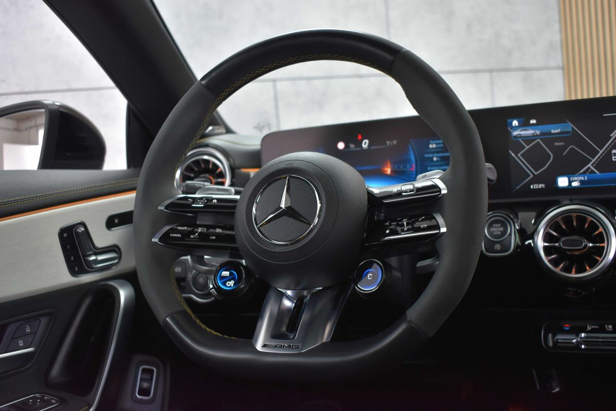 | Doplňující popis: | Vozidlo registrované jako nové v ČR, vůz v záruce do 03/2029, s možností odpočtu DPH. Přední část vozu je ochráněna čirou PPF folií. Pravidelně servisováno, proveden velký servis (svíčky, filtry, olej v motoru a převodovce), v 54 000 km provedena výměna předních brzdových kotoučů a destiček. Historie vozidla prověřena společností CEBIA, na vyžádání lze zaslat Cebia report mailem. Z volitelné výbavy: Sada AMG Aerodynamics, Sada AMG Night, Sada AMG Night II, Sada komfortních sedadel pro řidiče a spolujezdce (ortopedická sedadla), Sada pro parkování s 360° kamerou, Sada sedadel AMG Performance Advanced, Typ AMG Premium Plus, Sportovní sedadla AMG Performance, Podvozek s adaptivními tlumiči s volitelným režimem, Sedadlo řidiče elektricky nastavitelné s pamětí, Sedadlo spolujezdce elektricky nastavitelné s pamětí, Kůže šedá titanium pearl/černá, Ozdobné výplně interiéru - hliník AMG stříbrný/černý, MULTIBEAM LED světlomety, Panoramatické elektricky ovládané střešní okno, Asistent dopravního značení, Determální tmavá skla od B sloupku. Tato nabídka má pouze informativní charakter a neslouží jako podklad pro uzavření objednávky. STOP CARS s.r.o. si vyhrazuje právo uzavření všech smluvních vztahů písemně. | |