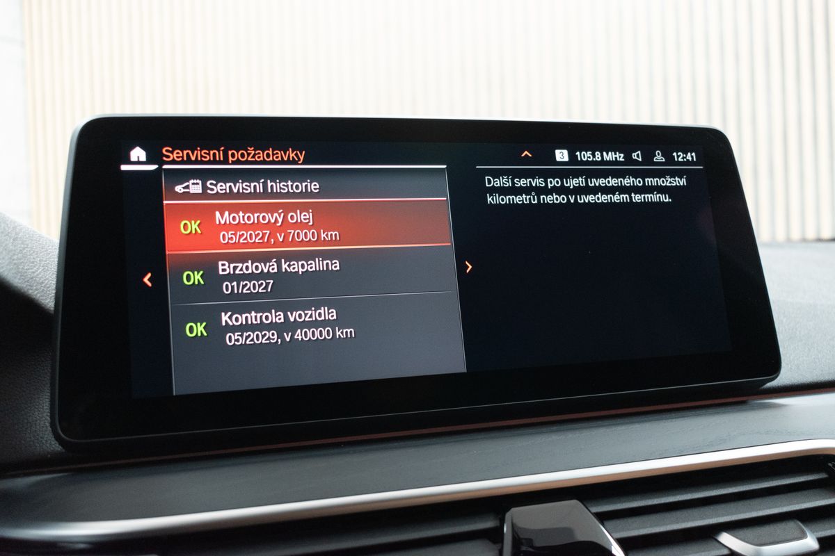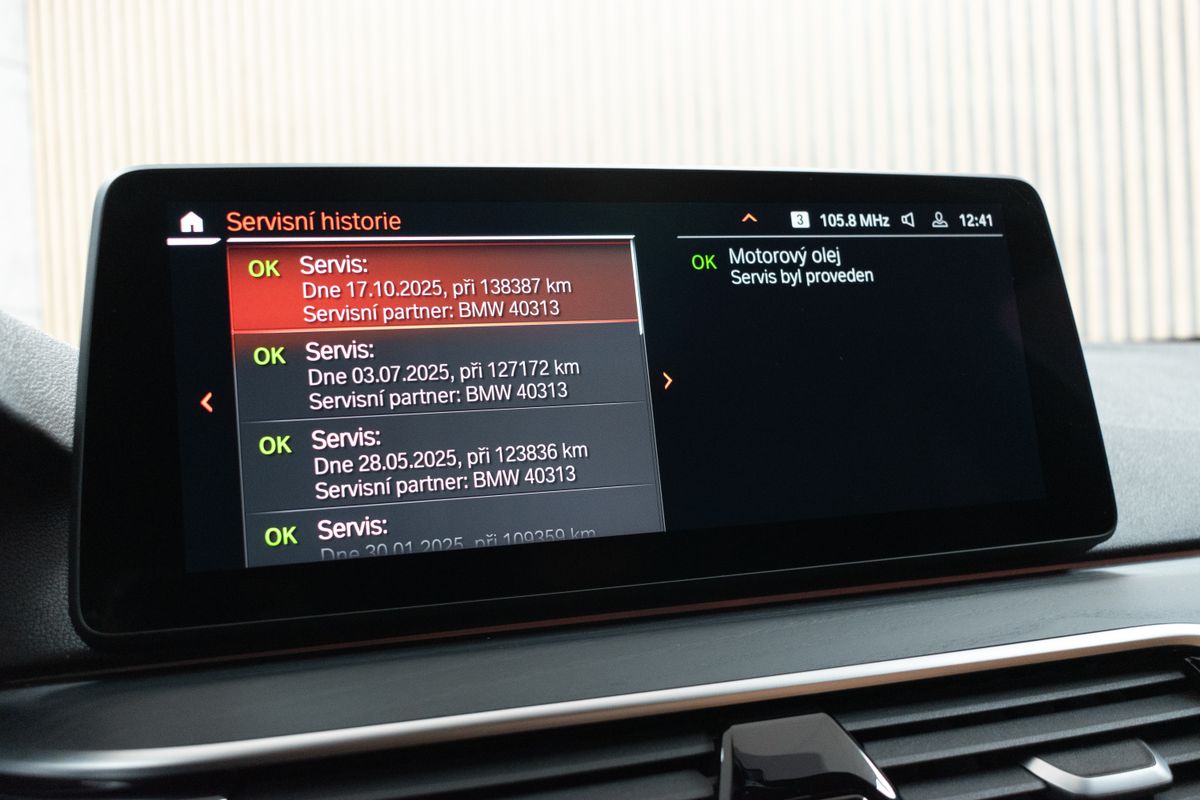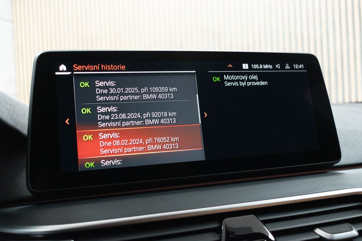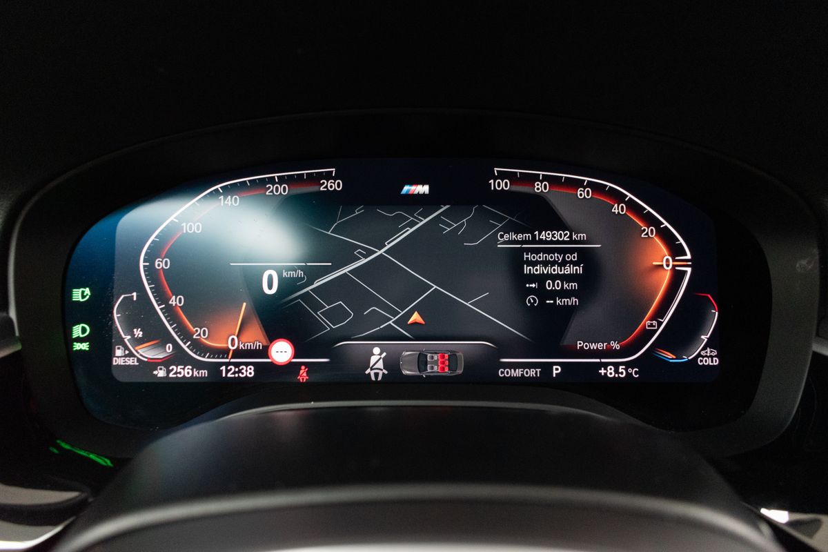 | Doplňující popis: | Vozidlo registrované jako nové v ČR od 1.majitele, s možností odpočtu DPH. Pravidelně servisováno, příští servisní interval za 7 000 km. Historie vozidla prověřena společností CEBIA, na vyžádání lze zaslat Cebia report mailem. Z volitelné výbavy: M sportovní paket, Aktivní ochrana, Driving Assistant, Asistent dálkových světlometů, BMW Display Key, Elektricky ovládané tažné zařízení, M sportovní podvozek, Parkovací asistent, Dřevěné obložení interiéru z jasanu s otevřenými póry s akcentní lištou Pearl Chrome, Kůže Dakota Cognac s exkluzivním kontrastním prošitím/Black, Rolovací sluneční clony pro zadní boční okna, mechanické, Elektricky nastavitelné bederní opěrky předních sedadel, Vyhřívání předních sedadel, Adaptivní matrixové LED světlomety včetně LED světel pro odbočování a LED ukazatelů směru jízdy, Nezávislé topení, Zvýšená protisluneční ochrana oken (od B-sloupku), HiFi systém – 12 reproduktorů (205 W), WiFi hotspot. Tato nabídka má pouze informativní charakter a neslouží jako podklad pro uzavření objednávky. STOP CARS s.r.o. si vyhrazuje právo uzavření všech smluvních vztahů písemně. | |