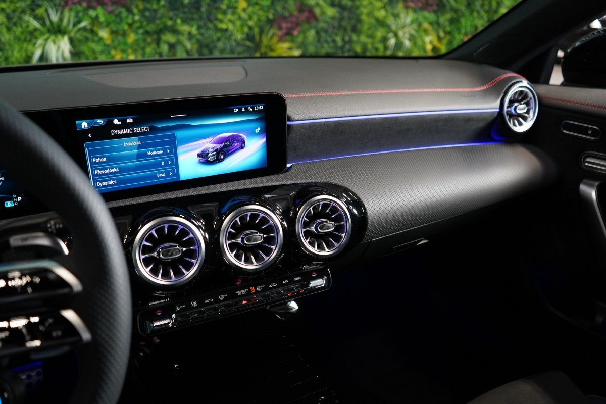 | Doplňující popis: | AS261846 Záruka: Vůz je v plnohodnotné tovární záruce Výbava: Barva: Šedá mountain magno Čalounění: Tkanina / syntetická kůže / mikrovlákno – černá/antracit 19 dvoupaprsková kola AMG Červeně lakované brzdové třmeny AMG Sada pro integrování smartphonu Apple CarPlay, Android Auto Distronic Pro Zpětná kamera Palubní kamera Asistent mrtvého úhlu Aktivní parkovací asistent Přední sedadla elektricky nastavitelná s paměťovou funkcí Aktivní asistent jízdního pruhu (kamera) Vnitřní zpětné zrcátko s automatickou změnou odrazivosti Varování před kolizí s aktivním brzdným zásahem FCW Stop Paměťová sada (sedadlo řidiče, sloupek řízení a zrcátka) Dvojitý držák nápojů Skener otisku prstu Dešťový senzor Systém tísňového volání eCall Loketní opěrka v zadní části vozidla Dvouspojková převodovka automatická 8stupňová Vyhřívaný multifunkční volant Kontrola tlaku v pneumatikách Sportovní podvozek Vnější zpětná zrcátka, elektricky sklopná Detekce značek určujících rychlost Vnitřní čalounění stropu látkové černé Digitální rádio se standardem DAB Tažné zařízení Automatická klimatizace s 2zónovou regulací Světlomety LED dynamické Automatické zapínání dálkových světel Plus (IHC+) USB Sklo s tmavým tónováním Soundsystém Midline Hands,free access Vyhřívaná sedadla vpředu Ostřik skel vyhřívaný Ambientní osvětlení KEYLESS Bezdrátové nabíjení telefonu v přední části ISOFIX Volič jízdních režimů AGILITY SELECT Volant AMG,kůže Nappa Vozidlo s 4MATIC / pohonem všech kol Parkovací paket Paket zrcátek Exteriérový Night paket AMG Zimní sada Navigace MBUX Premium Sada výbavy, High Augmented Reality Video Nastavení bederní opěrky vpředu Rohože – AMG Prahové lišty osvětlené Paket komfortních sedadel Světelná sada Tlačítka na volantu AMG (AMG DRIVE UNIT) | |