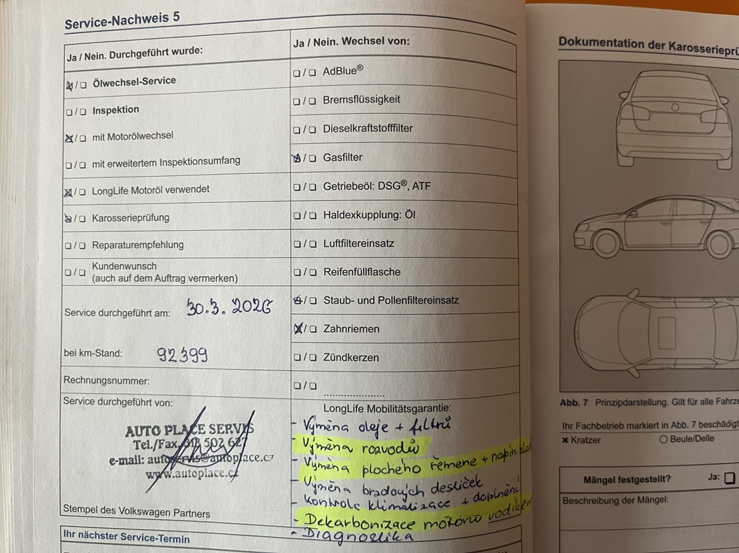| Doplňující popis: | první majitel, nehavarované, servisováno pouze u autorizovaného servisu, servisní knížka, náhradní klíč, návod k použití vozu Koupeno ve Švýcarsku, pravidelně servisováno u autorizovaného VW + nyní AUTOPLACE. Jako všechny naše vozy, tak i tento prochází důslednou předprodejní kontrolou na cca 220 bodech a v případě, že některý komponent by jevil výrazné známky opotřebení, tak byl vyměněn za nový originální kvality ( nyní po výměně všech filtrů a oleje, nové ROZVODY včetně kladek a řemenů.) To platí také o vnějším vzhledu vozidla, je-li nějaká část karoserie odřena od předchozího používaní, je nově nalakována, stejný systému je u podvozku, motoru, výfukového systému. Samozřejmě celý vůz myjeme včetně podvozku, interiér navíc tzv. mokrou cestou, vyndáme všechny sedačky, abychom měli přístup ke všem dříve nepřípustným místům se speciálním tzv. mokrým vysavačem, celý prostor důkladně vyčistíme. Klimatizace je vyčištěna a doplněna do 100% hodnot. Finální fází je kompletní diagnostika všech systémů, dekarbonizace motoru + STK. Zabezpečujeme poprodejní servis + zapůjčení náhradního vozu po dobu servisu + 3letou mechanickou záruku bez omezení km. Více informací na webu autoplace.cz nebo na bezplatné lince AUTOPLACE : 800 888 771 | |