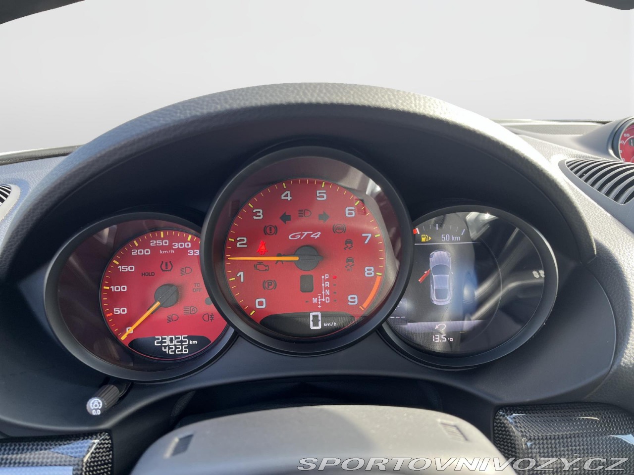 | Doplňující popis: | Původ Porsche Centrum Praha. Záruka Porsche Approved na 12 měsíců s možností prodloužení. Nadstandartní výbava: Vůz je vybaven paketem Clubsport Package, sadou na opravu pneumatik s kompresorem, lékárničkou, převodovkou Porsche Doppelkupplung (PDK), tempomatem, černým logem „PORSCHE“, dvouzónovou automatickou klimatizací, LED světlomety s Porsche Dynamic Light System Plus (PDLS Plus), zadním ParkAssistem, posilovačem řízení Plus, koberečky, sportovním volantem s červeným středovým označením, audiosystémem BOSE Surround Sound, Apple CarPlay, karbonovým interiérovým paketem, plnými skořepinovými sedadly, automaticky stmívatelnými zrcátky s dešťovým senzorem, paketem Sport Chrono Package a designovými prvky v barvě Guards Red včetně přístrojů, stopek a bezpečnostních pásů. | |