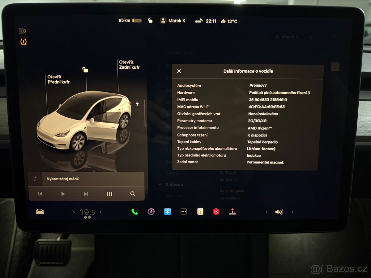 | Doplňující popis: | Velka baterie 79kwh LGM50, Perfektni zdravi baterie ca 96%, Nabijeno ca 70% setrne na domaci nabijecce, Rychlonabijeni 250kW DC (prumer 10-80% 125kW), Zaruka original Tesla na vozidlo do 03/2028 nebo 80.00km. Zaruka na baterii a pohonne ustroji do 03/2032 nebo 192.000km. 1.majitel v CR, koupeno v Rakousku tudiz jiz ma nejnovejsi SW aktualizaci s AI asistenentem. Nehavarovane, Garazovane. Vyborny tech. stav vozidla i baterie. Nove sterace, kabinove i HEPA filtry. Serizena geometrie v Tesla Viden. Realny dojezd mix provoz 400-530km. Vyborna prumerna spotreba ca 17-18,5kWh/100km, Velky zavazadlovy prostor +predni kufr, celkem ca 854 litru. Nizke provozni naklady pri dobijeni na Tesla Supercharger. VIN cislo na vyzadan, /poslednich 6 cisel jsou zamerne jen nuly/ Moznost odectu DPH, cena pevna uvedena vcetne DPH. | |
