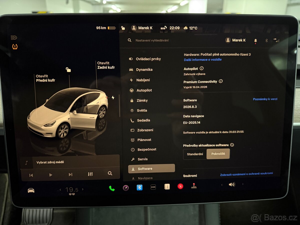 | Nadstandardní výbava: | Adaptivni Full LED svetlomety s vytmavovanim a auto rezimem, Vykonne tepelne cerpadlo treti generace, Predhrev baterie, Berlin verze, Nejnovejsi software 2026.8.03, Premium Audio, Premium Connectivity, Premium interier cerna kuze vc. el. sedadel, Panorama strecha, Vyhrev sedadel, zrcatek, volantu i celniho skla, Parkovaci asistent a parkovaci kamery, Autopilot, Perletova bila metaliza (PPWS), Alu kola 19” Gemini, Long Range All-wheel Drive, Supercharger Pay-as-you-Go, Tazne zarizeni original Tesla. Celorocni pneu Continental Electric rv 2024. | |