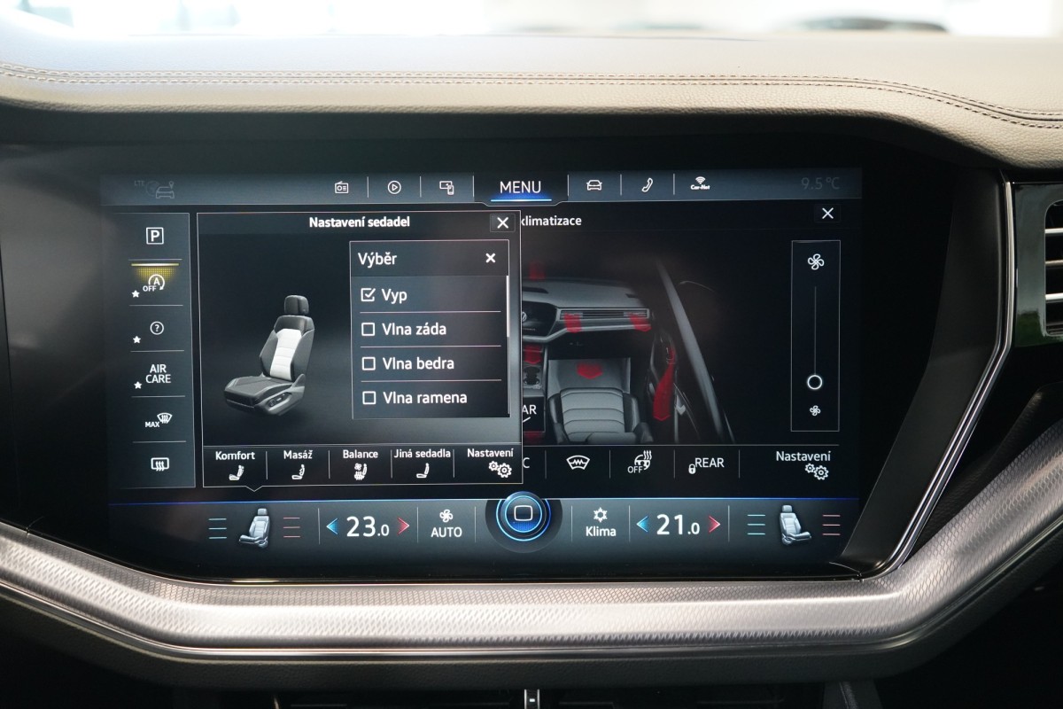 | Nadstandardní výbava: | 8 rychlostních stupňů, adaptivní regulace podvozku, parkovací kamera, adaptivní tempomat, Android Auto, Apple CarPlay, asistent jízdy v jízdním pruhu, asistent rozjezdu do kopce (HSA), asistent změny jízdního pruhu, stabilizace podvozku (ESP), protiprokluzový systém kol (ASR), brzdový asistent, aut. zabrzdění v kopci, automatické parkování, parkovací senzory přední, parkovací senzory zadní, bezdrátová nabíječka mobilních telefonů, bezklíčové odemykání, senzor opotřebení brzdových destiček, senzor tlaku v pneumatikách, autorádio, bluetooth, USB, denní svícení, digitální příjem rádia (DAB), aut. klimatizace, dotykové ovládání palubního počítače, centrál dálkový, el. dovírání dveří, el. okna, centrální zamykání, el. seřiditelná sedadla, alu kola, el. startér, el. tažné zařízení, el. víko zavazadlového prostoru, kožené čalounění, hands free, satelitní navigace, head-up display, hlasové ovládání palubního počítače, hlídání jízdního pruhu, hlídání mrtvého úhlu, imobilizér, isofix, el. přední okna, senzor stěračů, LED adaptivní světlomety, LED denní svícení, LED matrixové světlomety, automatické přepínání dálkových světel, nastavitelný volant, natáčecí světlomety, natáčecí zadní kola, nouzové brzdění (PEBS), odvětrávaná sedadla, ostřikovače světlometů, přední světla LED, paměť nastavení sedadla řidiče, parkovací asistent, senzor světel, zadní světla LED, regulace tuhosti podvozku, regulace výšky podvozku, pohon 4x4, polohovací sedadla, aut. převodovka, pérování vzduch, regulace rychlosti při jízdě ze svahu, digitální přístrojová deska, digitální přístrojový štít, elektronická ruční brzda, palubní počítač, sedadla s funkcí masáže - přední, venkovní teploměr, vnitřní teploměr, volba jízdního režimu, sledování únavy řidiče, multifunkční volant, posilovač řízení, řazení pádly pod volantem, start-stop systém, podélný posuv sedadel, střešní šíbr el., tažné zařízení, tónovaná skla, ukazatel rychlostního limitu (SLIF), potahy kůže, sportovní sedadla, bezklíčové startování, startování tlačítkem, vyhřívaná sedadla, vyhřívaná zadní sedadla, el. sklopná zrcátka, vyhřívané přední sklo, vyhřívané trysky ostřikovačů čelního skla, výsuvné opěrky hlav, výškově nastavitelná sedadla, výškově nastavitelné sedadlo řidiče, zadní loketní opěrka, el. zrcátka, zadní stěrač, samostmívací zrcátka, zatmavená zadní skla, čtyřzónová klimatizace, vyhřívaná zrcátka, | |