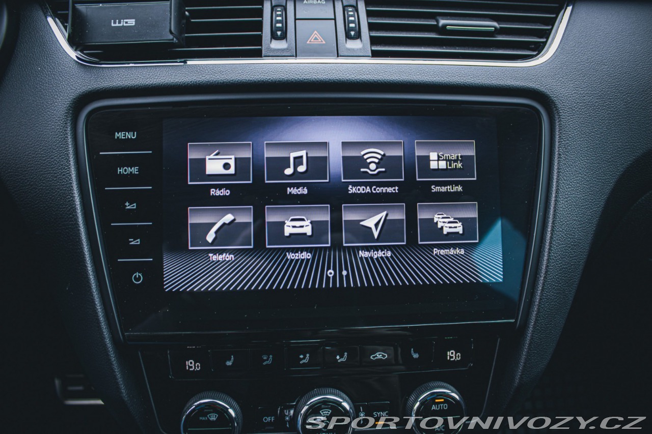 | Nadstandardní výbava: | Maxi DOT - plnegrafický displej palubného počítača, Možnos podvolantového radenia DSG prevodovky, Odistenie operadiel zadných sedadiel z batožinového priestoru, Predné hmlové svetlomety - RS, Rádio BOLERO s USB a SD slot + 8 reproduktorov, Signalizácia nezpnutia bezpečnostného pásu vodiča a spolujazdca a troch miest vzadu, Trojramenný športový kožený multifunkčný volant pre ovládanie rádia a telefónu, Vnútorné spätné zrkadlo so senzorom vlhkosti a automatickým stmievaním, Výškovo nastaviteľné predné sedadlá s bedrovými opierkami, Zadný stierač Aero s ostrekovačom, Športový podvozok, Výbava: ABS, Airbagy, Airbagy - počet, ASR, Centrálne zamykanie, Deaktivácia airbagov, EBD, EBV, ESP, Isofix, Natáčacie svetlomety, Systém kontroly tlaku v pneumatikách (TPMS), Autorádio, Bezdotykové otváranie kufra, Bezkľúčové štartovanie, Bluetooth handsfree, Diaľkové ovládanie zamykania, Dotykový displej, Elektrické okná, Elektrické zrkadlá, Elektrické ovládanie kufra, Fólie, Klimatizácia, Klimatizovaná priehradka, Lakťová opierka, LED svetlomety, LED svietenie, Multifunkčný volant, Navigačný systém, Palubný počítač, Parkovacie senzory, Parkovací asistent, Tempomat, Vyhrievané sedačky, Vyhrievané zrkadlá, Vonkajší teplomer, Apple CarPlay, Android Auto, Radenie pod volantom, Ambientné osvetlenie, Asistent rozjazdu do kopca, Dažďový senzor, Hmlovky, Ostrekovače svetlometov, Stop&start systém, Strešný nosič, Svetelný senzor | |