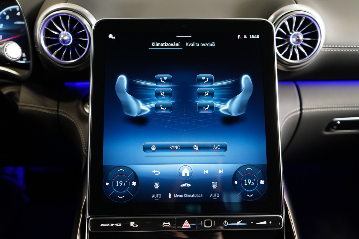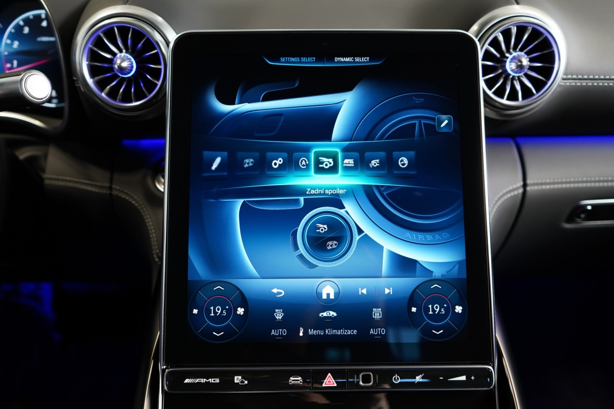 | Doplňující popis: | AS261857 Záruka: Vůz je v plnohodnotné tovární záruce Výbava: Barva: Šedá selenite – metalický lak Čalounění: Kůže/nappa/semianilin černá/anthracite 21 dvoupaprsková kola AMG Žlutě lakované brzdové třmeny AMG Apple CarPlay, Android Auto Řízení zadní nápravy Tempomat s regulací odstupu Plus (DISTRONIC PLUS) Aktivní parkovací asistent Aktivní asistent jízdního pruhu (kamera) Vnitřní a vnější zrcátka s automatickou změnou odrazivosti Track Pace Zadní snímače pro asistenta jízdy v pruzích Příčná podpora DISTRONIC PLUS (DTR+Q) Přední senzory pro monitoring křižovatek Paměťová sada (sedadlo řidiče, sloupek řízení a zrcátka) PRE,SAFE® Držák nápojů Světlomety LED digitální Skener otisku prstu Personalizace zvuku Zapínatelný zvuk motoru Systém tísňového volání eCall Multikonturové sedadlo vpředu s masážní funkcí Vysoce výkonná brzdová soustava AMG Plus Klimatizace předních sedadel Pevná panoramatická skleněná střecha Automatická 9stupňová převodovka Funkce projekce přes světlomety Head,Up displej Vyhřívaný multifunkční volant Elektronická uzávěrka diferenciálu Semiaktivní stabilizace jízdy (Semi ARS) Kontrola tlaku v pneumatikách (RDK) Multimediální systém MBUX Premium včetně videostreamingu Vnější zpětná zrcátka, elektricky sklopná Kamera 360° Rozpoznávání dopravních značek Digitální rádio se standardem DAB Automatická regulace rychlosti Zadní sedadla pro roadster (2+2 sedadla) Automatická klimatizace s 2zónovou regulací Projekce loga přes podélník Vnitřní obložení střechy, mikrovlákno, černá Automatické zapínání dálkových světel Plus (IHC+) Paket USB Nápisy a logo MB v černé barvě Soundsystém Burmester Sklo s tmavým tónováním Hands,free access MAGIC VISION CONTROL včetně vyhřívaných ostřikovačů KEYLESS Elektrické víko zavazadlového prostoru Ambientní osvětlení Premium Přístup a autorizace vozidla prostřednictvím smartphonu Bezdrátové nabíjení telefonu v přední části ISOFIX Ozdobné prvky, černý chrom Aktivní asistent změny jízdního pruhu Rozšířené rozjíždění při provozu Stop,And,Go Přizpůsobení rychlosti v závislosti na trase Záchranářská ulička s přejetím označení jízdního pruhu Asistent nouzového zastavení s varováním hands,off při změně jízdního pruhu Volant AMG,kůže Nappa Vozidlo s 4MATIC / pohonem všech kol Sada jízdních asistentů Parkovací paket Paket zrcátek Exteriérový Night paket AMG Paměťová sada vpředu Sada AMG Dynamic Plus Sada AMG Night II Navigace MBUX Premium Augmented Reality Video 12V zásuvka v zavazadlovém prostoru Tlačítka na volantu AMG (AMG DRIVE UNIT) | |