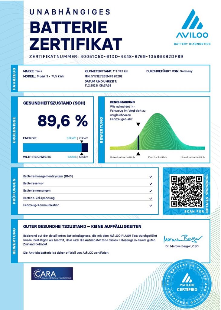 | Doplňující popis: | Tesla Model 3 Long Range Dual Motor - 366kW SOH 89, 6% (ODPOČET DPH) - cena uvedena vč. DPH, baterie 74, 5 kWh, dovoz: Německo, VIN: 5YJ3E7EB5MF890262, elektro, do provozu: 22.2.2021, najeto: 111122 km, pohon kol: 4x4, automatická převodovka, STK do: 4/2028, WLTP 614 km, procesor INTEL ATOM, MATRIX SVĚTLOMETY, TAŽNÉ ZAŘÍZENÍ, tepelné čerpadlo, klimatizace, parkovací kamera, přední a zadní vyhřívaná sedadla. Záruka na Akumulátor a hnací ústrojí 8 let nebo po ujetí 192.000 km (podle toho, co nastane dříve).*MOŽNOST VYKOUPENÍ VAŠEHO STARÉHO VOZU PROTIÚČTEM* *MOŽNOST VÝHODNÉHO FINANCOVÁNÍ už bez nulové akontace* Pro nezávaznou kalkulaci nás neváhejte kontaktovat. Nutno vždy volat předem! Prohlídky možné i mimo pracovní dobu tel. 732710796 Mates auto. Nejedná se o návrh na uzavření smlouvy (nabídku) dle § 1731 zákona č. 89/2012 Sb., občanský zákoník, ale o nezávaznou nabídku., | |