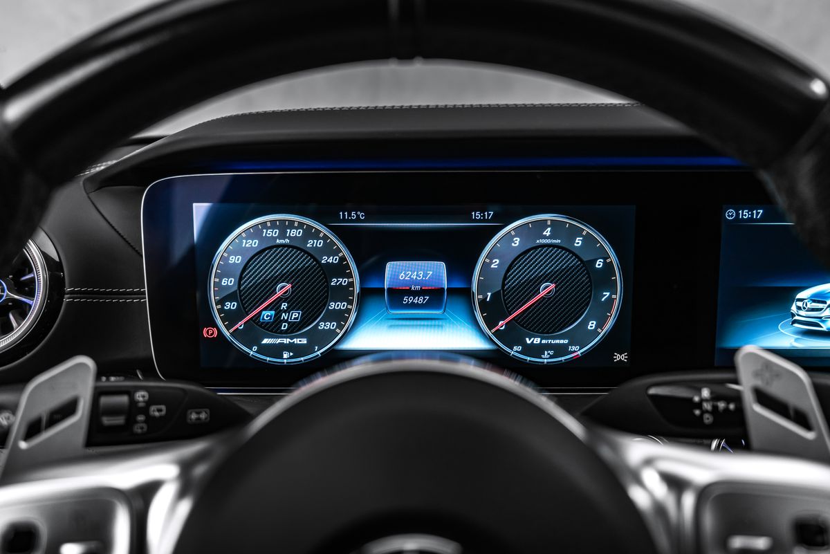 | Doplňující popis: | Úložný balíček, audionavigační systém COMAND Online, DAB tuner (digitální rádiový příjem), balíček asistenčních systémů Plus, informační systém řidiče (AMG Performance Media), Vozidlo bez označení modelu, Vnitřní obložení: Jasanové dřevo, černé, Palivová nádrž: 80 litrů (zvětšená kapacita, objem 2), Paměťový balíček, Metalický lak, Středová konzola v jasanovém dřevě, černé, Multibeam LED světlomety, Noční balíček (AMG), Elektrické panoramatické posuvné střešní okno (plně prosklená střecha), Parkovací balíček s 360° kamerou, Sada na opravu pneumatik (Tirefit), Vyhřívaný ostřikovač čelního skla, Přední sedadla: klimatizace, Integrace chytrého telefonu, Sportovní výfukový systém (AMG Performance), Systém prostorového ozvučení Burmester, Analogové hodiny. Termín prohlídky si prosím předem domluvte. Děkujeme. | |