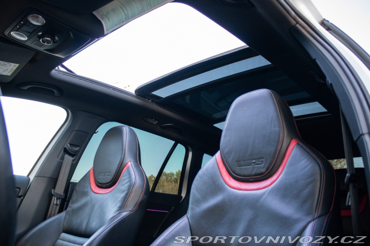 | Nadstandardní výbava: | Climatronic - automaticá klimatizácia s kombinovaným filtrom a senzorom vlhkosti v držiaku vnútorného spätného zrkadla s aut. stmievaním, Maxi DOT - plnegrafický displej palubného počítača, Možnosť podvolantového radenia DSG prevodovky, Predné hmlové svetlomety - RS, Predné hmlové svetlomety s Corner funkciou, Rádio BOLERO s USB a SD slot + 8 reproduktorov, Trojramenný športový kožený multifunkčný volant pre ovládanie rádia a telefónu, Výškovo nastaviteľné predné sedadlá s bedrovými opierkami Výbava: ABS, Airbagy, ASR, Centrálne zamykanie, EBV, ESP, Isofix, Systém kontroly tlaku v pneumatikách (TPMS), Autorádio, Bluetooth handsfree, Elektrické zrkadlá, Klimatizácia, Kožený interiér, Lakťová opierka, LED svietenie, Multifunkčný volant, Navigačný systém, Palubný počítač, Parkovacie senzory, Parkovací asistent, Tempomat, Vyhrievané predné sklo, Vyhrievané sedačky, Vyhrievané zrkadlá, Xenónové svetlomety, Radenie pod volantom, Ambientné osvetlenie, Asistent rozjazdu do kopca, Dažďový senzor, Sezónne prezutie, Stop&start systém, Strešné okno, Svetelný senzor, Ťažné zariadenie | |