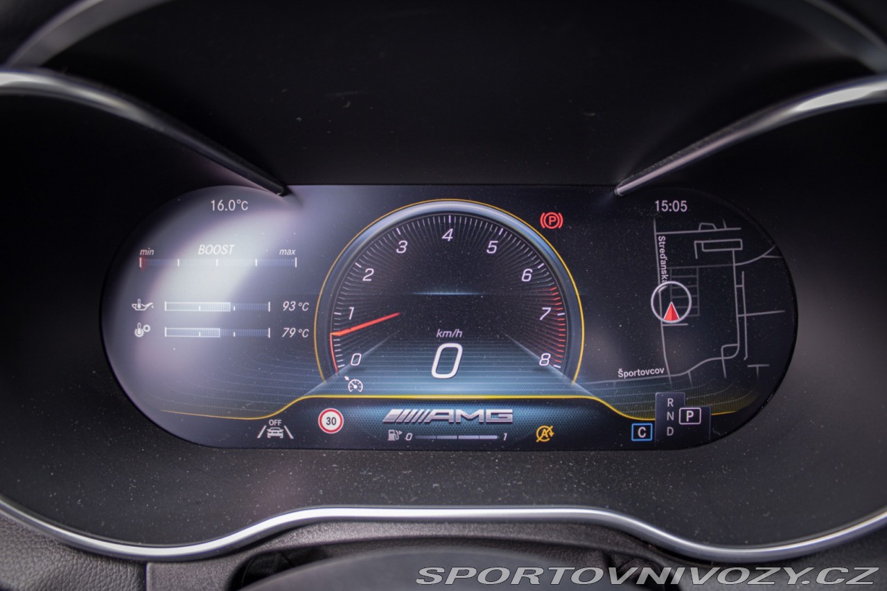 | Nadstandardní výbava: | virtual cockpit, BURMESTER audio, Aktívny asistent brzdenia výstraha pred kolíziou vrátane situačnej podpory brzdenia a autonómneho brzdenia na zmiernenie alebo zabránenie kolízii, DYNAMIC SELECT pozostávajúci z 5 jazdných programov, Multifunkčný športový volant v koži, Odtrhová hrana AMG na veku batožinového priestoru, Podvozok AMG RIDE CONTROL, Vysokovýkonné svetlomety s LED, Športové pedále, Štartovacia funkcia KEYLESS-GO Výbava: Airbagy, Parkovacia kamera, Systém kontroly tlaku v pneumatikách (TPMS), Asistent rozpoznávania dopravných značiek (ISLW/ISLA), Systém tiesňového volania (e-Call), Asistent diaľkových svetiel (HBA), Adaptívny podvozok, Bezkľúčové štartovanie, Bluetooth handsfree, Klimatizácia, LED svetlomety, LED svietenie, Navigačný systém, Parkovacie senzory, Parkovací asistent, Tempomat, Vyhrievané sedačky, Vyhrievané zrkadlá, Welcome light, Radenie pod volantom, Ambientné osvetlenie, Asistent jazdných pruhov, Dažďový senzor, Kontrola mŕtveho uhla, Sezónne prezutie, Svetelný senzor | |