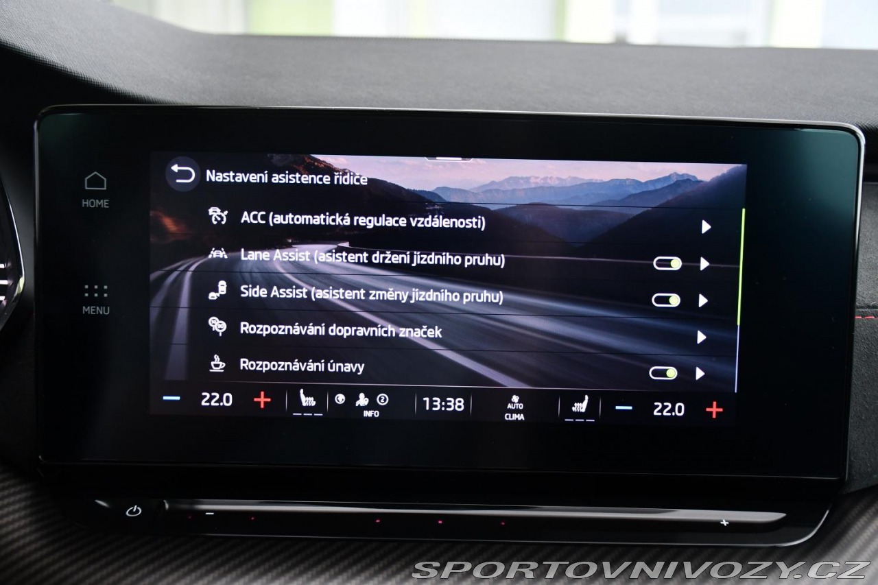 | Nadstandardní výbava: | aut. převodovka, 8x airbag, ABS, brzdový asistent, stabilizace podvozku (ESP), protiprokluzový systém kol (ASR), nouzové brzdění (PEBS), asistent rozjezdu do kopce (HSA), ukazatel rychlostního limitu (SLIF), hlídání jízdního pruhu, hlídání mrtvého úhlu, asistent jízdy v jízdním pruhu, sledování únavy řidiče, regulace tuhosti podvozku, adaptivní regulace podvozku, tažné zařízení, posilovač řízení, dvouzónová klimatizace, aut. klimatizace, adaptivní tempomat, LED matrixové světlomety, LED denní svícení, automatické přepínání dálkových světel, alu kola, palubní počítač, hlasové ovládání palubního počítače, dotykové ovládání palubního počítače, digitální přístrojový štít, volba jízdního režimu, elektronická ruční brzda, satelitní navigace, head-up display, parkovací senzory přední, parkovací senzory zadní, parkovací asistent, parkovací kamera, bezklíčové startování, bezklíčové odemykání, senzor světel, senzor stěračů, nastavitelný volant, multifunkční volant, řazení pádly pod volantem, deaktivace airbagu spolujezdce, hands free, Android Auto, Apple CarPlay, bluetooth, el. víko zavazadlového prostoru, el. okna, střešní nosič, dojezdové rezervní kolo, el. sklopná zrcátka, el. zrcátka, samostmívací zrcátka, startování tlačítkem, imobilizér, centrál dálkový, centrální zamykání, sportovní sedadla, potahy kůže, isofix, kožené čalounění, vyhřívaná sedadla, el. seřiditelná sedadla, výškově nastavitelná sedadla, paměť nastavení sedadla řidiče, polohovací sedadla, senzor tlaku v pneumatikách, senzor opotřebení brzdových destiček, přední světla LED, zadní světla LED, mlhovky, USB, autorádio, digitální příjem rádia (DAB), venkovní teploměr, vyhřívaná zrcátka, zadní loketní opěrka, vnitřní teploměr, zadní stěrač, tónovaná skla, zatmavená zadní skla, záruka, el. tažné zařízení, digitální přístrojová deska, | |