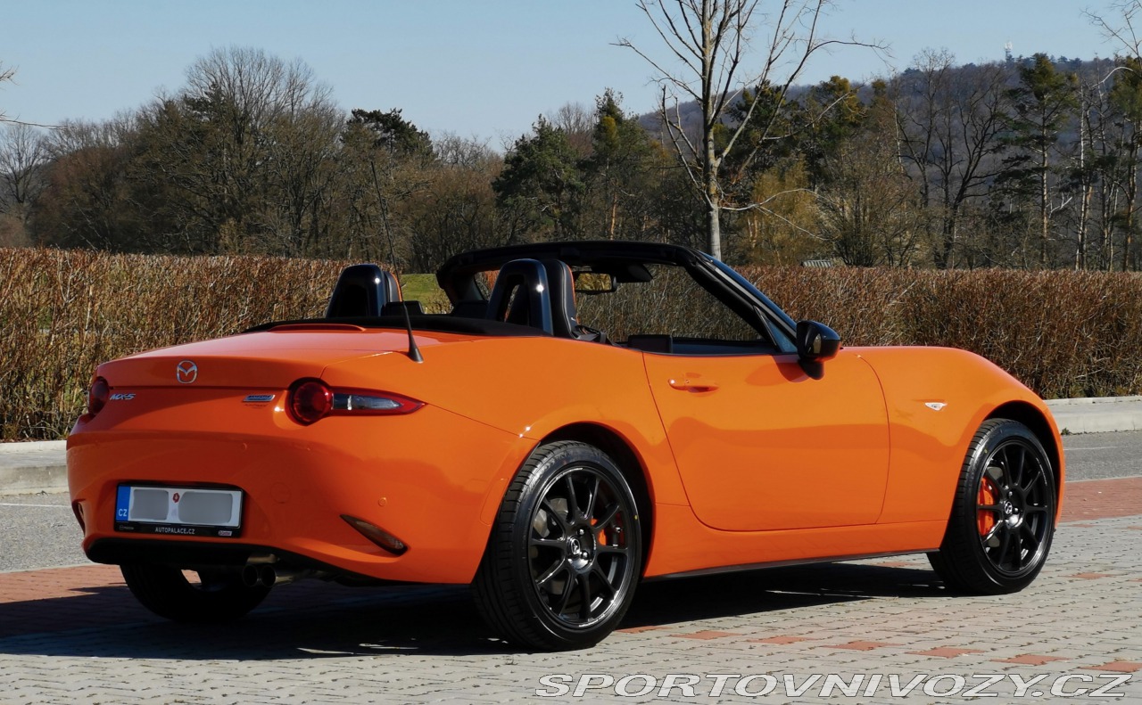 | Nadstandardní výbava: | 30th Anniversary, sedačky Recaro, audio Bose, brzdy Brembo, tlumiče Bilstein, kovaná kola Rays.RV 2019, koupeno v Autopalace Spořilov, do provozu 03/2020, STK do 12/2027, první majitel, odpočet DPH nikoli. Info zde: https://www.stream.cz/meziplyn/mazda-mx-5-30th-anniversary-oslava-v-oranzovem-63951371 Moc v ní nejezdím (najeto asi 33 tis. km od roku 2020, mám jiné firemní auto), a je škoda, aby jen tak parkovala u baráku, když může někomu jinému dělat radost. 2x výměna předního nárazníku (1x díra od kamene, 1x silniční lišej od svodidla). Jinak beze šrámů, servisováno výhradně v autorizovaném Autopalace Spořilov. | |