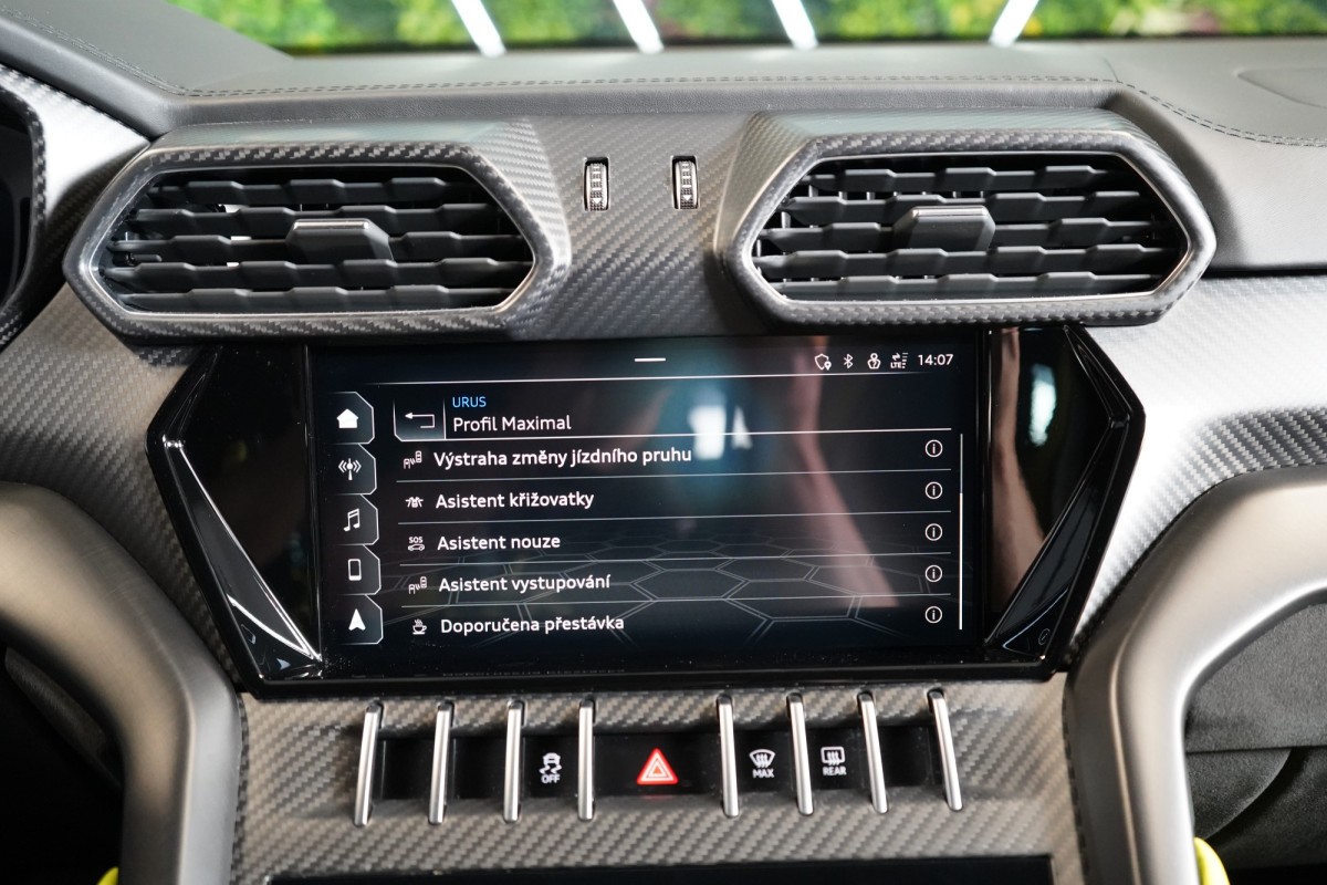 | Doplňující popis: | AS242311 Výbava: Limitovaná edice Graphite Capsule Barva: Nero Noctis matte Čalounění: Kůže/Alcantara, Černá/Žlutá 23 disky kol Taigete v leskle černém provedení s lemy v barvě Verde Scandal Karbon Keramické brzdy se zelenými třmeny Akcenty exteriéru v barvě: Verde Scandal Adaptivní vzduchové odpružení s nastavitelnou výškou a tuhostí LED Adaptivní světlomety Asistent dálkových světel Koncovky výfuků v černé matné barvě Keyless,Go Elektricky ovládané víko kufru Elektricky nastavitelná sportovní sedadla s pamětí vpředu Vyhřívaná sedadla vpředu a vzadu Automatická 4zónová klimatizace Panoramatické střešní okno Čalounění stropu v kůži Obložení interiéru matný karbon Adaptivní tempomat Side assist Lane Assist Automatické parkování 360° kamery Asistent jízdy ze svahu Head,up displej Bezdrátové dobíjení telefonu USB Volič jízdních režimů Virtual cockpit Vyhřívaný multifunkční volant s pádly řazení Satelitní navigace Přední a zadní parkovací senzory Bluetooth Apple CarPlay Android Auto Servozavírání dveří, Soft Close ISOFIX Zadní loketní opěrka Volič jízdních režimů Lamborghini Anima Výstraha vzdálenosti Precognition Výstraha změny jízdního pruhu Asistent křižovatky Asistent nouze | |