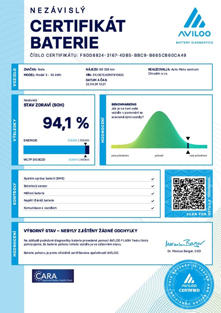 | Doplňující popis: | Tesla Model 3 Standard Range Plus 208 kW SOH 94, 1% (ODPOČET DPH) - cena uvedena vč. DPH, baterie 55 kWh - 5YJ3E7EA0MF910425, přihlášeno v ČR, elektro, do provozu: 23.3.2021, najeto: 66326 km, pohon kol: zadní, automatická převodovka, STK do: 12/2027, parkovací kamera, přední vyhřívaná sedadla, procesor INTEL ATOM, MATRIX SVĚTLOMETY, WLTP 491 km. Záruka na Akumulátor a hnací ústrojí 8 let nebo po ujetí 160.000 km (podle toho, co nastane dříve). *MOŽNOST VYKOUPENÍ VAŠEHO STARÉHO VOZU PROTIÚČTEM* *MOŽNOST VÝHODNÉHO FINANCOVÁNÍ už bez nulové akontace* Pro nezávaznou kalkulaci nás neváhejte kontaktovat. Nutno vždy volat předem! Prohlídky možné i mimo pracovní dobu tel. 732710796 Mates auto. Nejedná se o návrh na uzavření smlouvy (nabídku) dle § 1731 zákona č. 89/2012 Sb., občanský zákoník, ale o nezávaznou nabídku., | |