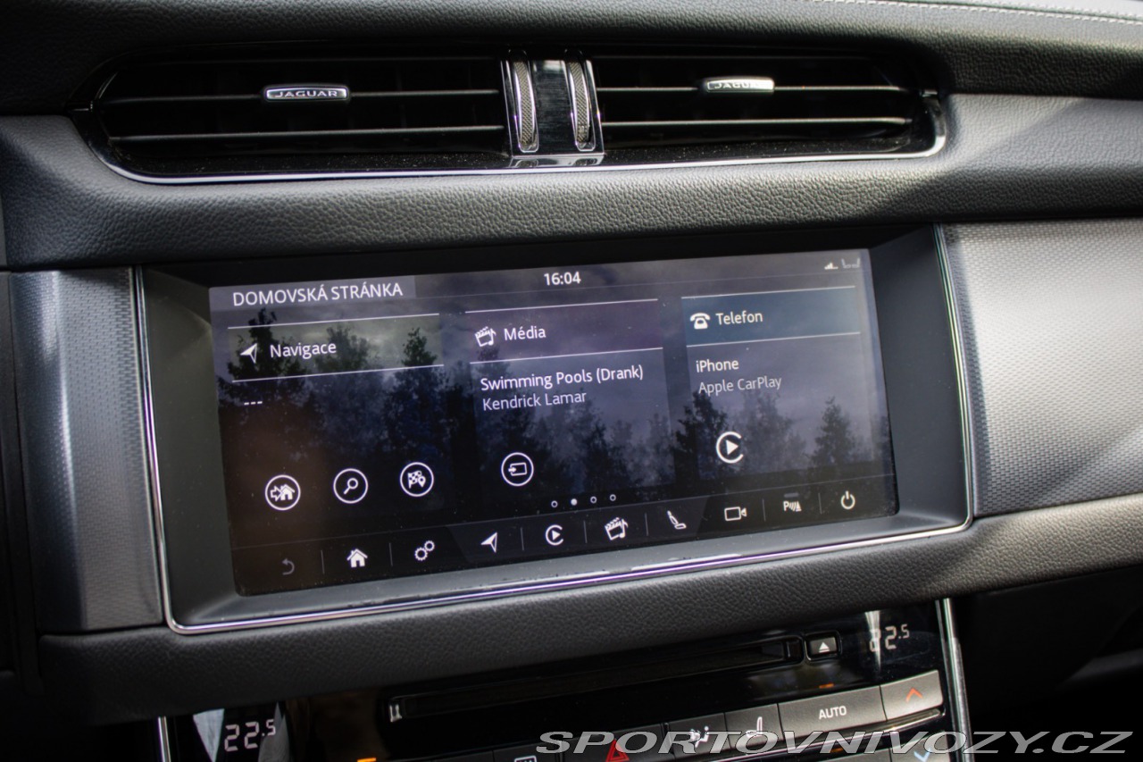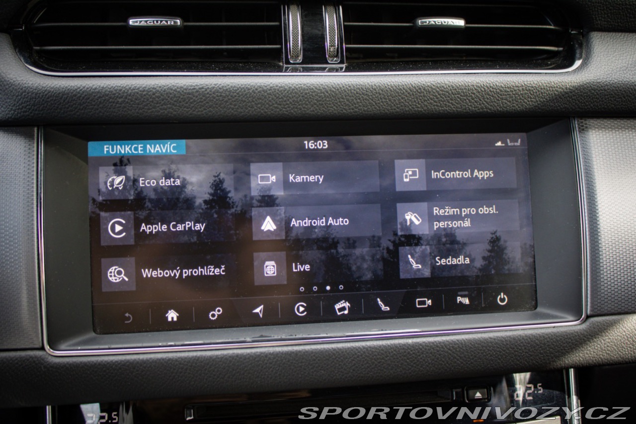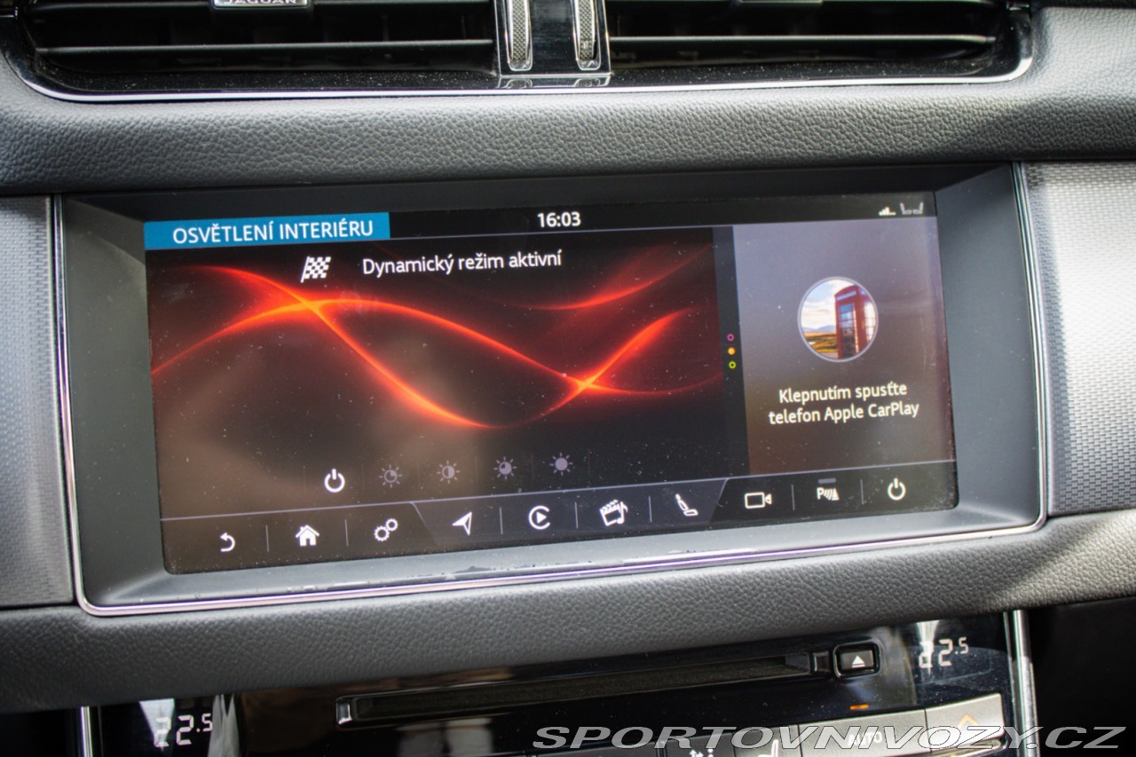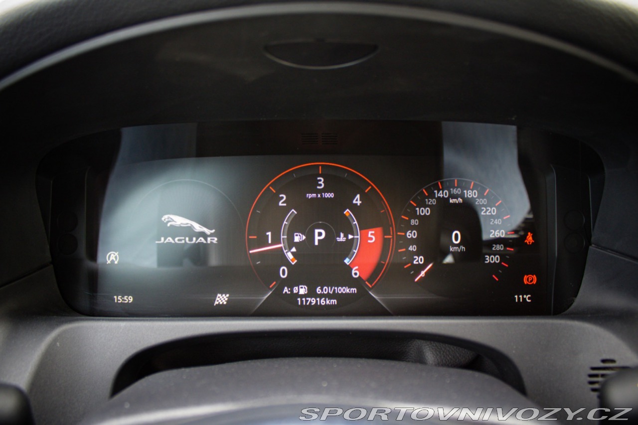 | Nadstandardní výbava: | SOFT CLOSE, MERIDIAN AUDIO, Monitor jazdného pruhu a kondície vodiča Len s 065EA, Mriežka chladiča Grained Black s obložením Satin Chrome Pri objednaní 065AG dodané ako 064FP, Nárazník predný - R-Sport R-Sport body kit Len s 070AR, Parkovacie senzory - predné Len s C11A, Parkovacie senzory - zadné, Prahové lišty - podsvietené kovové s nápisom Jaguar Len predné dvere, Systém núdzového brzdenia (AEB) použitím prednej kamery Len s H72C/D, Volant v prevedení Softgrain koža - R-Sport Vrátane pádielok radenia na volante v prevedení Satin Chrome pre automat Výbava: ABS, Adaptívny tempomat, ADS, Airbagy, ASR, Brzdový asistent, DSC, EBV, ESP, Imobilizér, Isofix, Parkovacia kamera, Systém kontroly tlaku v pneumatikách (TPMS), Asistent rozpoznávania dopravných značiek (ISLW/ISLA), 360° kamera, Autorádio, Bezdotykové otváranie kufra, Bezkľúčové otváranie dverí, Bezkľúčové štartovanie, Bluetooth handsfree, Elektrické okná, Elektrické sedadlá, Elektrické zrkadlá, Klimatizácia, Klimatizovaná priehradka, Kožený interiér, Lakťová opierka, LED svetlomety, LED svietenie, Multifunkčný volant, Navigačný systém, Parkovacie senzory, Tempomat, Vyhrievané predné sklo, Vyhrievané sedačky, Vyhrievaný volant, Apple CarPlay, Android Auto, Virtuálny kokpit, Radenie pod volantom, Asistent jazdných pruhov, Doťahovanie dverí, Hliníkové disky | |