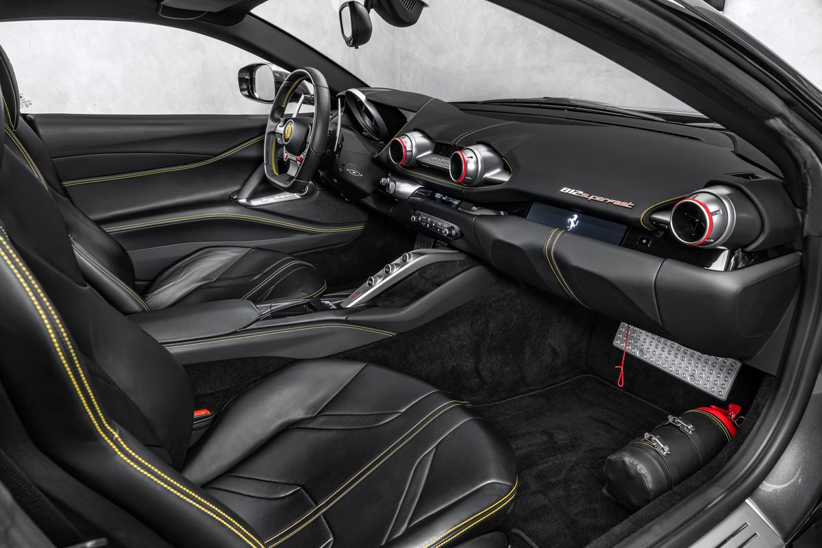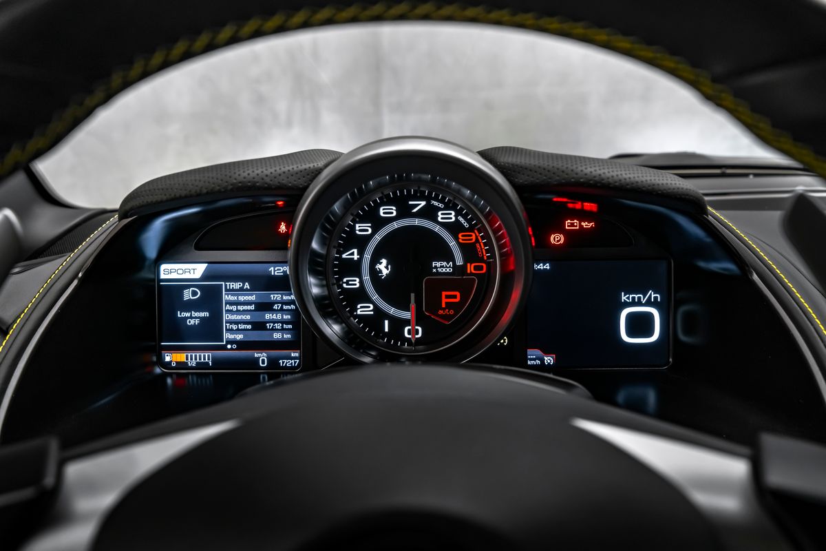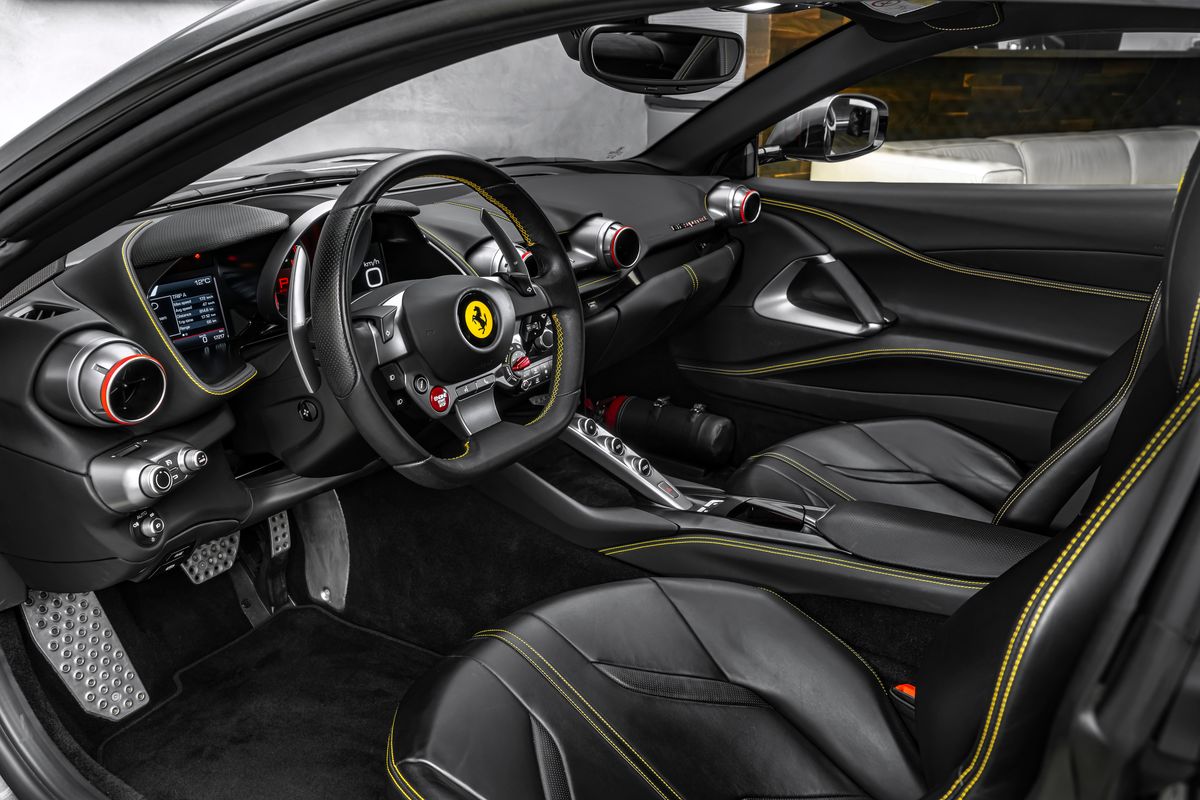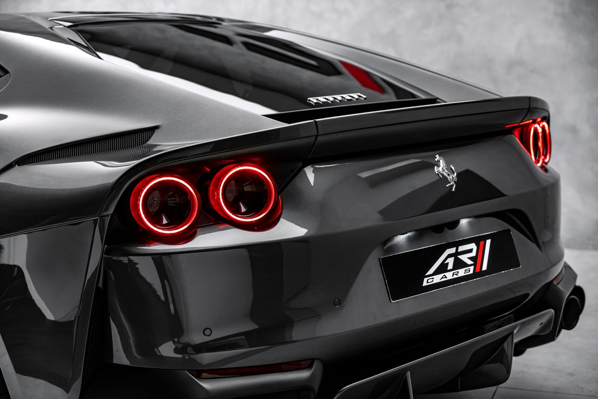 | Doplňující popis: | Bratislava, FERRARI 812 SUPERFAST EXTERIÉR: Grigio Silverstone 740 Adaptívne svetlomety s funkciou SBL Žlté brzdové strmene Stredové krytky kolies z karbónových vlákien Zdvihací systém podvozka (suspension lifter) Vyšitý znak Cavallino (koník) na opierkach hlavy Čierne koncovky výfuku Hasiaci prístroj Tepelnoizolačné čelné sklo Šitie v odtieni Giallo (žltá) Erby „Scuderia Ferrari“ na blatníkoch Predné a zadné parkovacie senzory vrátane kamier Displej pre spolujazdca Zadné zatmavené (súkromné) sklá 20” kované disky v tmavej farbe Plne elektricky nastaviteľné sedadlá Farebné kontrastné prešívanie (špeciálne vyhotovenie) | |